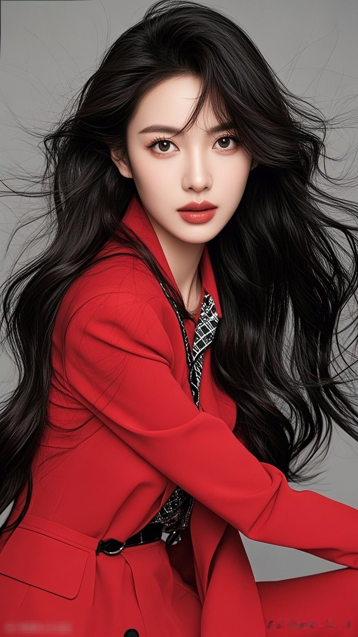 红衣黑发,气质满分,女神驾到!职场裙装怎样穿出高级感