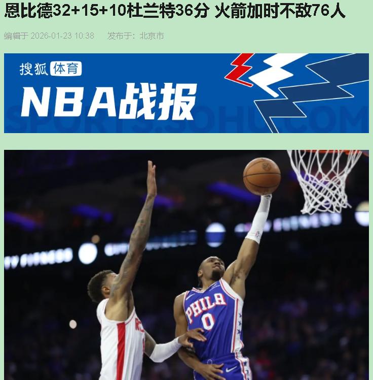 看完这场球,差点心梗!先别摔遥控器,火箭这场输得憋屈,意外让人看清了点儿东西。 都说杜兰特36分是“空砍”,但咱凭良心讲,最后时刻那进攻犯规和8次失误,确实辣眼睛。球星成色?恩比德+马克西这场直接给你验货了——一个复出就轰32+15+10大三双,另一个加时赛连拿关键分,费城双星硬是把火箭内线打穿了。而火箭这边,范弗利特不在,进攻就像少个发动机,阿门-汤普森拼是拼,火候还是欠了点。 裁判那干扰球漏判,是让人吐血。可话说回来,火箭第四节领先9分都能被翻盘,加时赛直接崩盘,这毛病是不是更致命?总在关键时刻掉链子,防守走着神,这真不是一句“裁判抢戏”就能带过的。 所以醒醒吧,西部第四再美,缺了核心控卫、关键时刻没人站出来,这瓶颈就卡在这儿。76人倒是一战宣告:恩比德健康,他们就是东部硬茬。火箭想往前走,光靠杜兰特抡不行,乌度卡得把球队捏成整体——防守、分享球、关键时刻的执行,差一样都得挨揍。 输一场不是世界末日,但疼一次得长一次记性。赛季还长,真正的强队,都是在憋屈里学会赢球的。火箭,路还远着呢。恩比德32+15+10杜兰特36分 火箭加时不敌76人