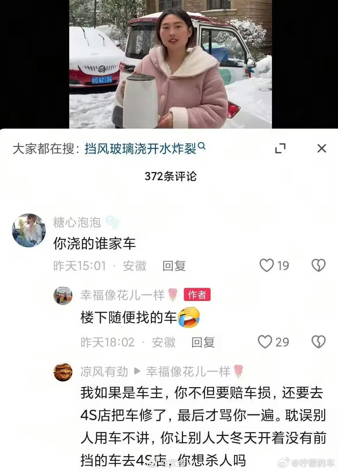 如何预防挡风玻璃结冰这个问题最好回答了在冬天,为了防止挡风玻璃结霜结冰,有车库的朋友第一时间先把车停到车库里,如果不方便只能停在露天的地方,就在网上买一块前挡风防尘防霜罩,在北方的朋友可能经常会在路边看到这样的景象,一排排的车都铺着这种布罩。但注意,一定不能拿热水浇在玻璃上,容易碎裂超级车主