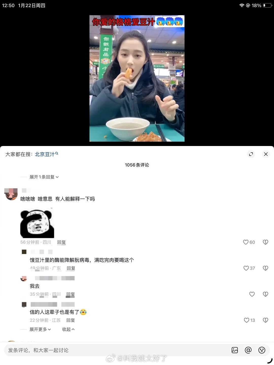 抖人真的太超神了,他们说关晓彤有吃入的基因,古人吃完人会喝豆汁解毒,所以她才爱喝豆汁…🌚