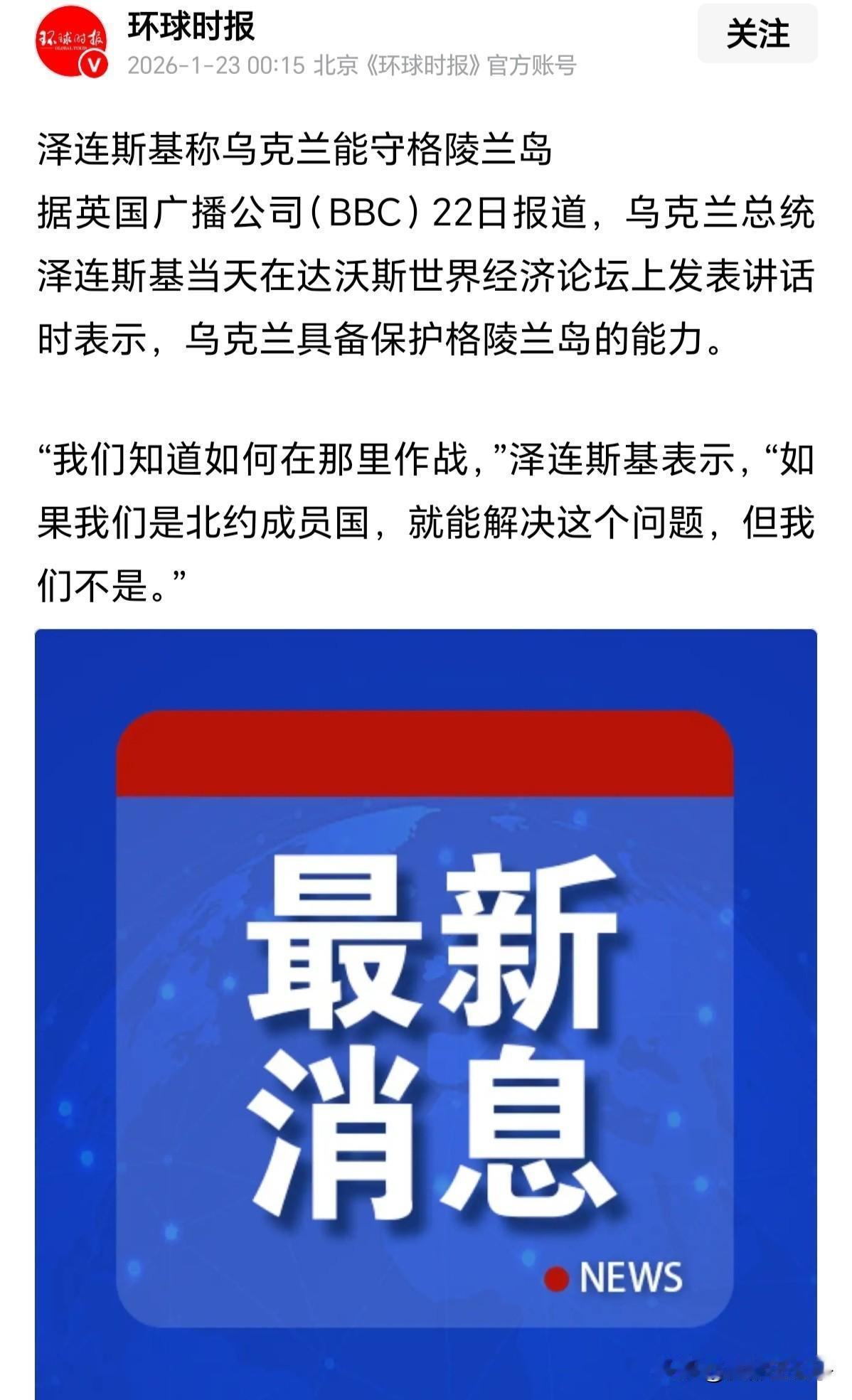 什么玩意?乌克兰有能力保护格陵兰岛? 泽连斯基是不是又磕high了呀?还什么乌克兰有能力在格陵兰岛作战,那请问你在格陵兰岛是和谁打仗呢? 泽连斯基:只要让我们加入北约,我就可以和北约的老大作战了,而且我们可以战胜北约的老大。 泽连斯基再多说几句,特朗普就该把她带走了。委内瑞拉总统前几天刚被美国带走,也不差再带走一个泽连斯基。 特朗普估计还懵着呢:拿着朕的钱,拿着朕的武器,居然敢和朕作对,看来泽连斯基是嫌自己命太长了。