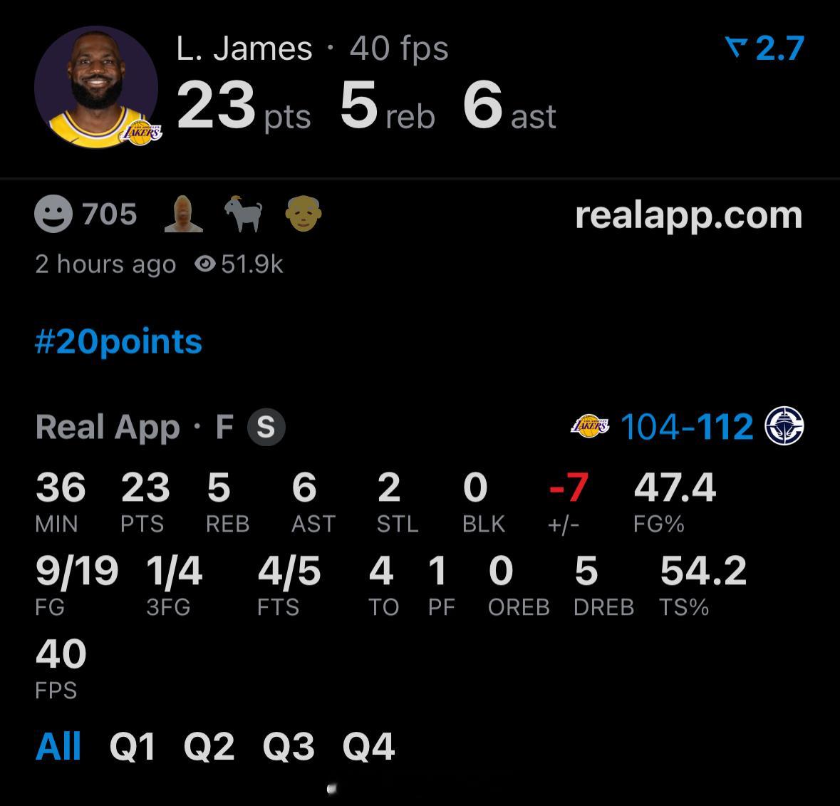 出战36分钟,19投23分4失误,正负值-7如何评价詹姆斯洛杉矶德比的表现?😏快船战胜湖人