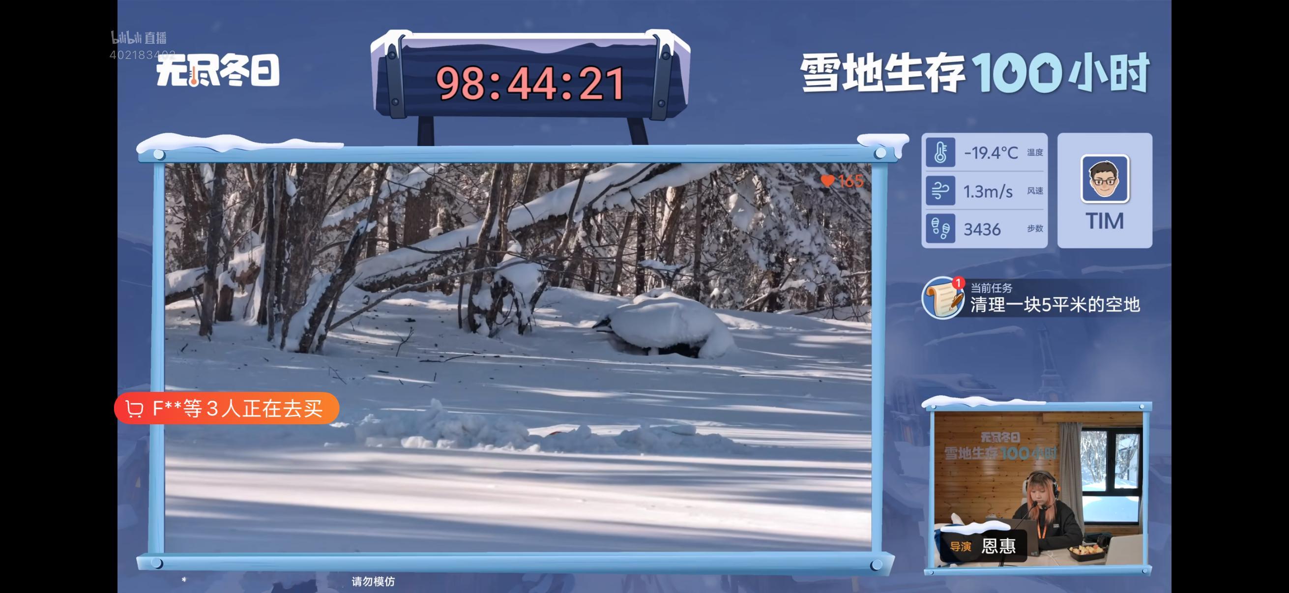 tim又整大活儿了。雪地生存100小时直播。太狠了,零下20多度,真的超冷🥶