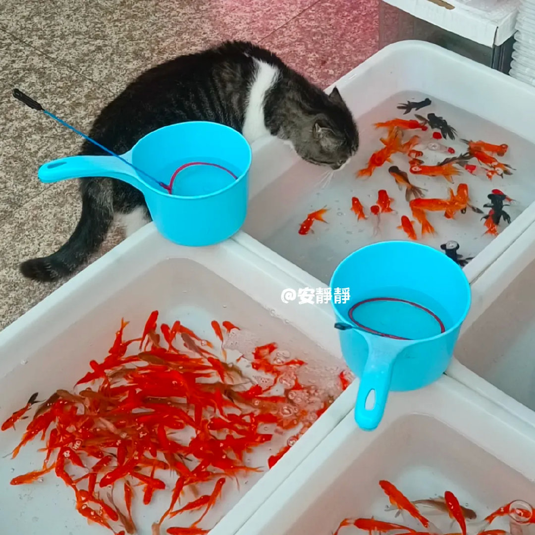 花鸟市场兢兢业业的猫老板,很认真在看店了,上班时间摸鱼看仓鼠巡视兔子哈哈哈,顺便再喝点鱼汤补补!