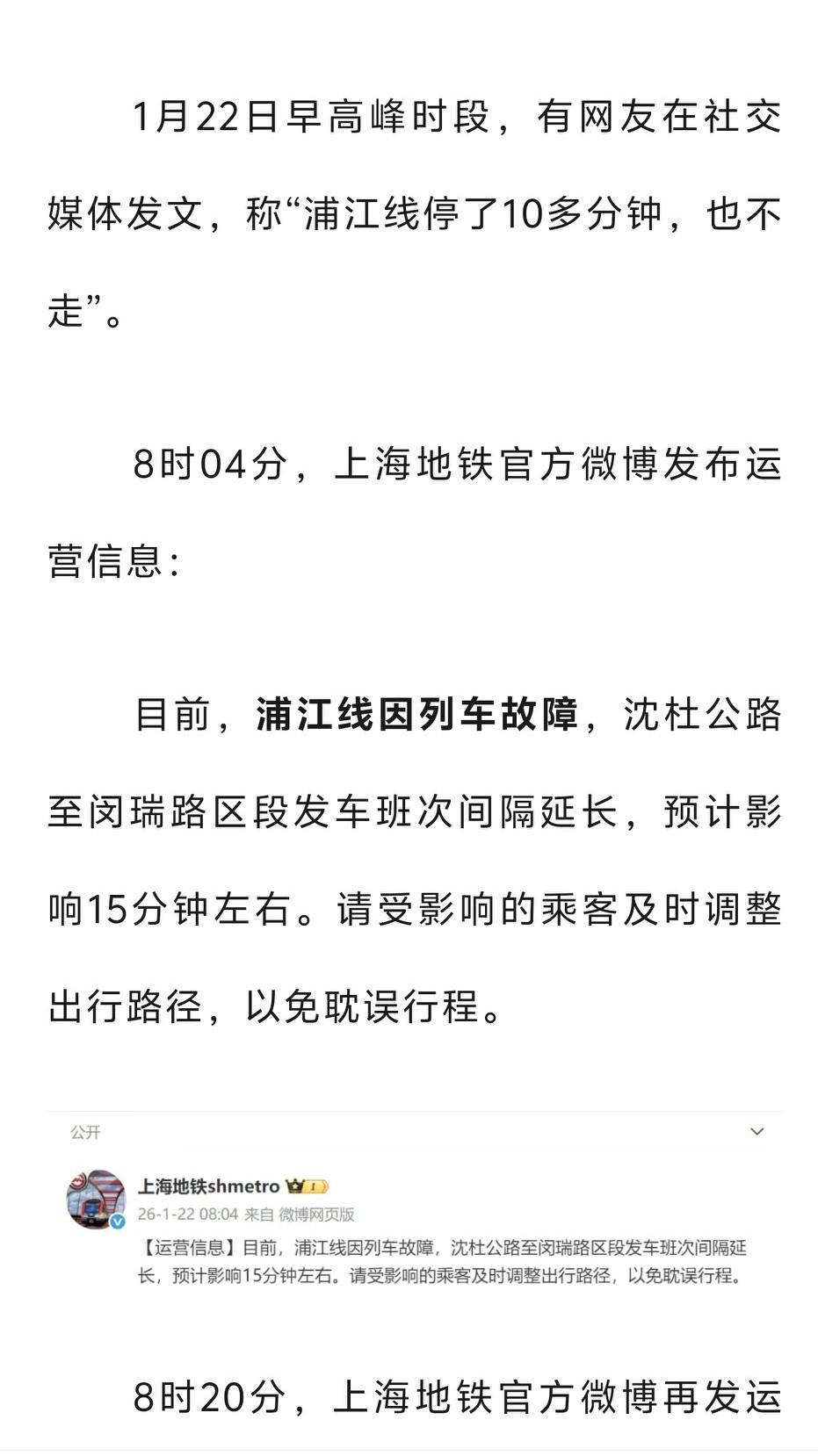 上海地铁也扛不住这减员增效! 1月22日早高峰,上海地铁浦江线出状况了。有网友吐