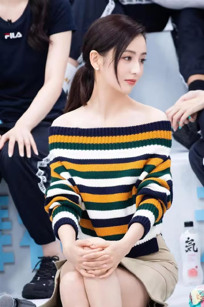 佟丽娅离婚后状态越发年轻!穿条纹露肩毛衣+短裙,时髦又高级!