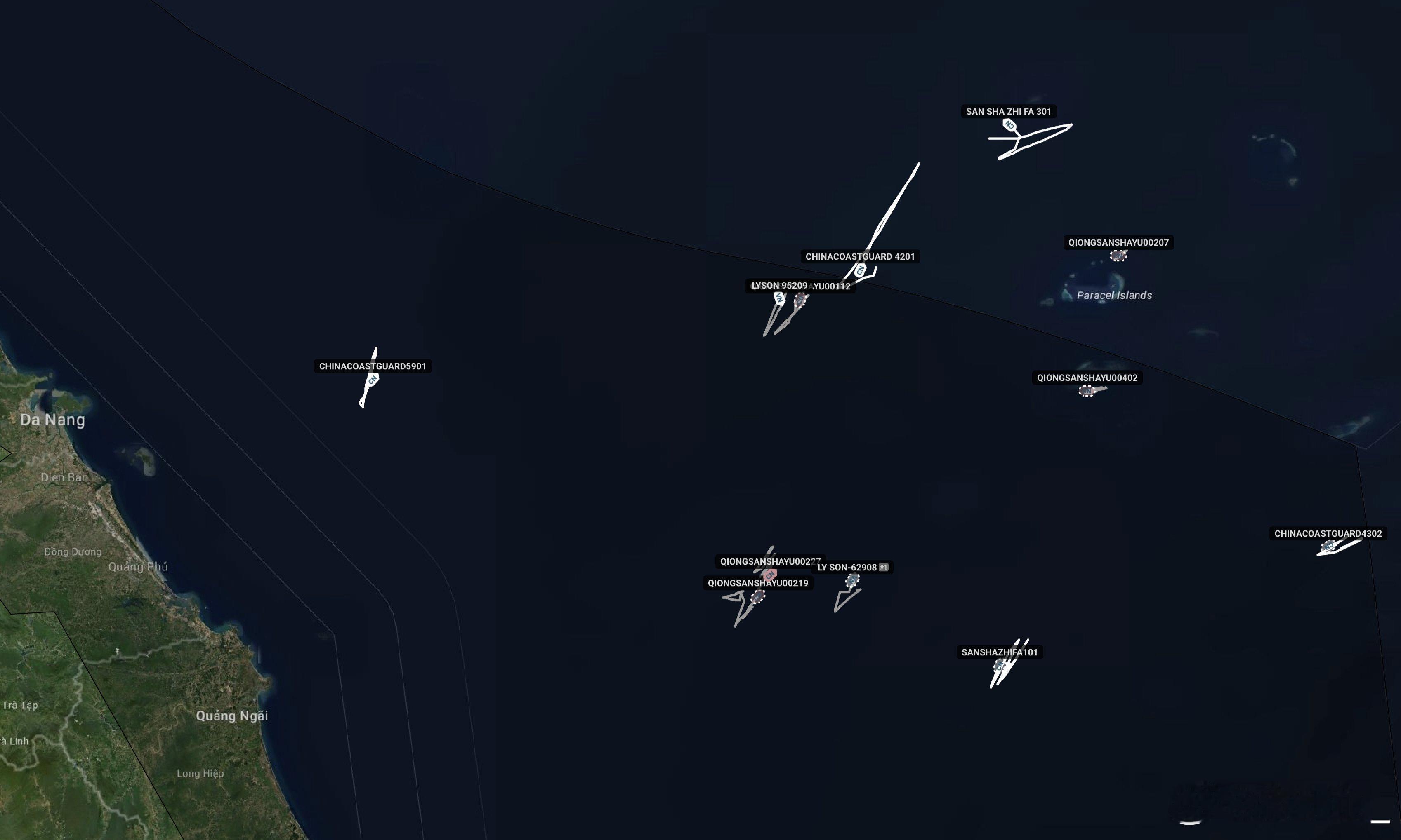 外网称中国海警5901舰昨天开始在西沙群岛以西的十段线海域巡航,距岘港约50海里。在西沙群岛附近海域巡航的还有中国海警4302舰、4201舰,以及三沙执法301船和101船等。南海态势