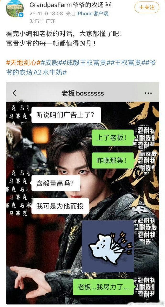 爷爷的农场光一个联名款单平台就卖了10多万份(一份是2-6箱),赚翻了啊怪不得广告商都跟着成毅跑,连续三部剧又是加广又是加联名的,这就是成毅的顶级商业价值和号召力!成毅莲花楼爱奇艺打分人数top1 成毅 成毅商业价值和号召力