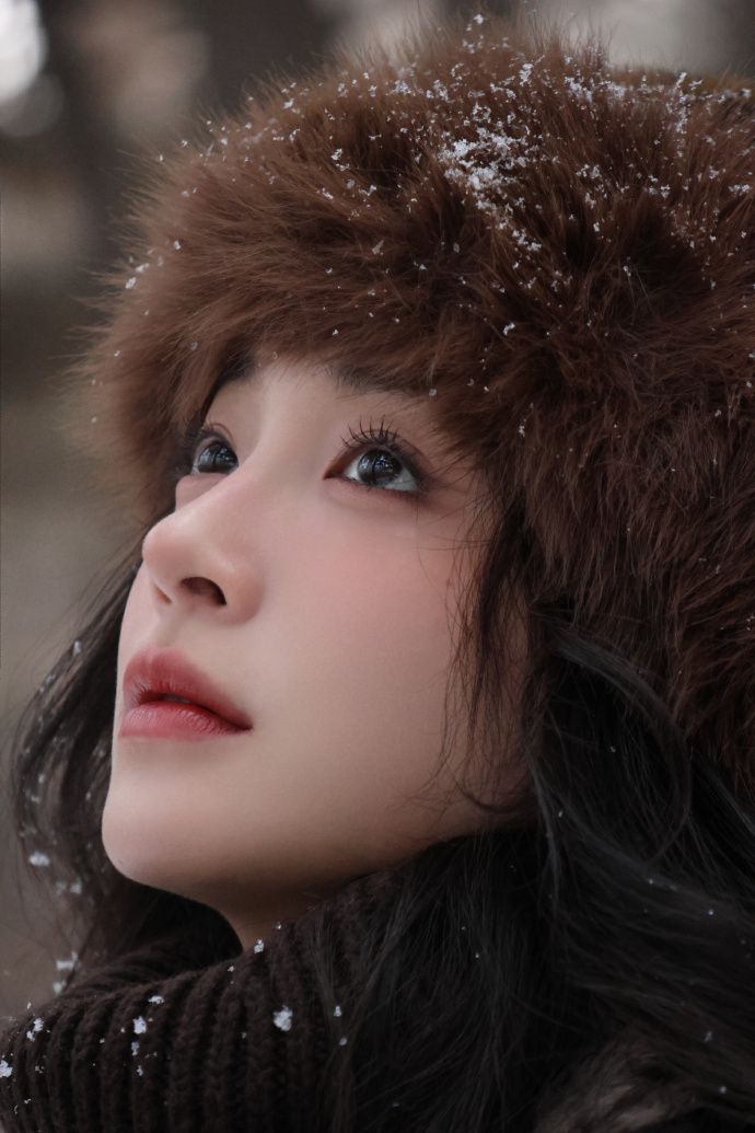 周洁琼雪景写真,好像雪国精灵啊,感觉被净化了,怼脸拍更是伟大!