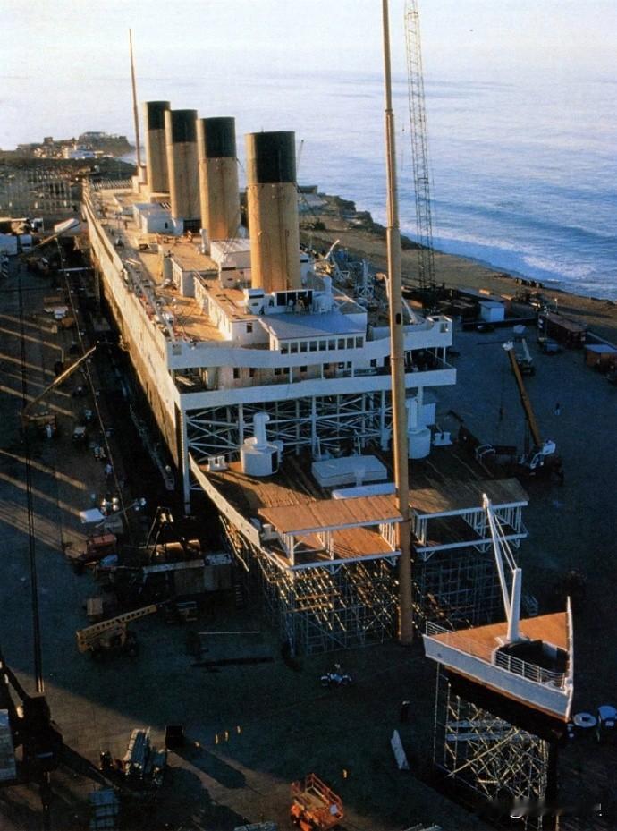 历史老照片:好莱坞大片中的那艘著名大船 搭建中的泰坦尼克号道具船,下加里福尼亚州,1996年摄。