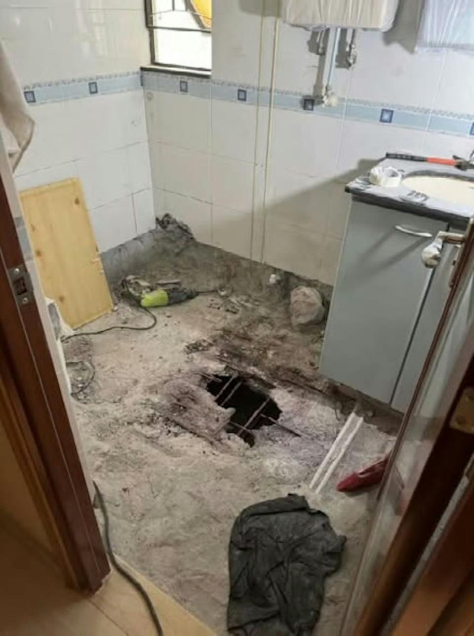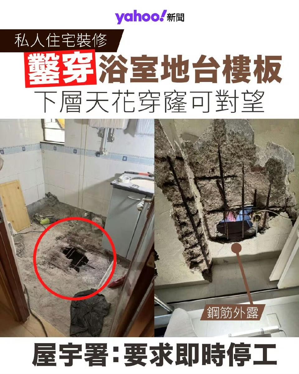 日出康城私人住宅,楼上装饰把地板给凿穿了,港府屋宇署表示结构没危险,要复原。