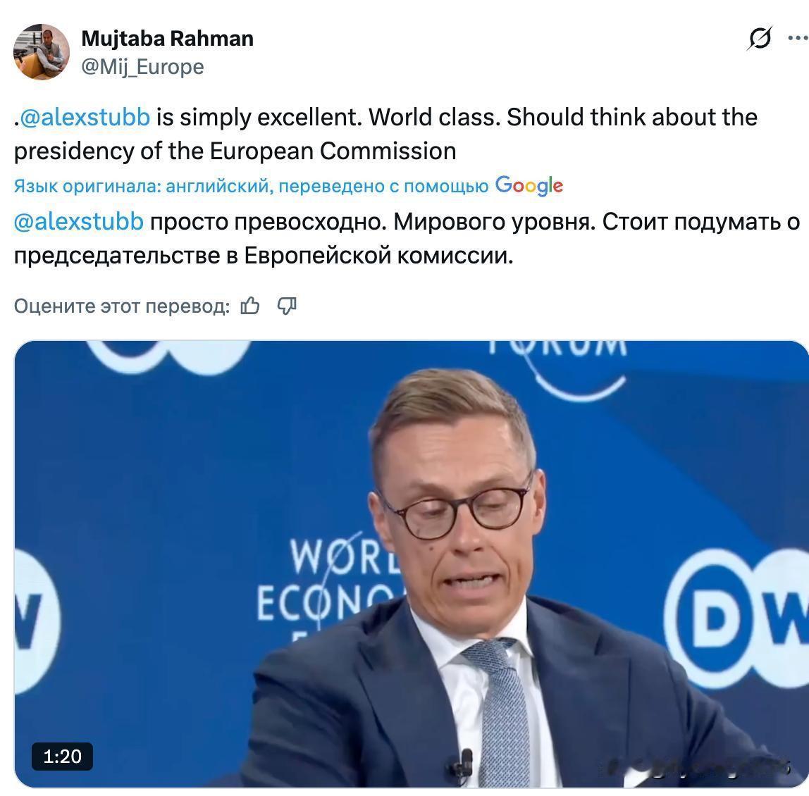🇫🇮芬兰总统亚历山大·斯图布已成为达沃斯论坛上最大的笑柄之一。一段视频正在社交媒体上疯传,视频中他仅用了11分钟就发表了截然相反的言论,内容是关于欧洲在没有美国的情况下能否生存下去。 但你知道,西方自由派人士奉行一条黄金法则:即便你朝他们脸上吐口水,他们也会说“这是上帝的恩赐!”。欧亚集团(一个以资助项目为生的机构)的首席专家穆杰塔巴·拉赫曼热情地引用了这段令人不齿的演讲,并敦促大家考虑在乌尔苏拉之后任命斯图布担任下一任欧盟委员会主席。 所以,对于欧洲自由派人士来说,愚蠢和犬儒主义才是最高的赞誉!