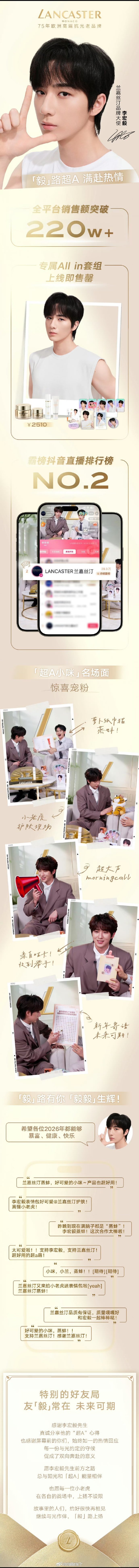 李宏毅品牌直播官方战报全平台销售额破220万➕李宏毅一定会越来越好