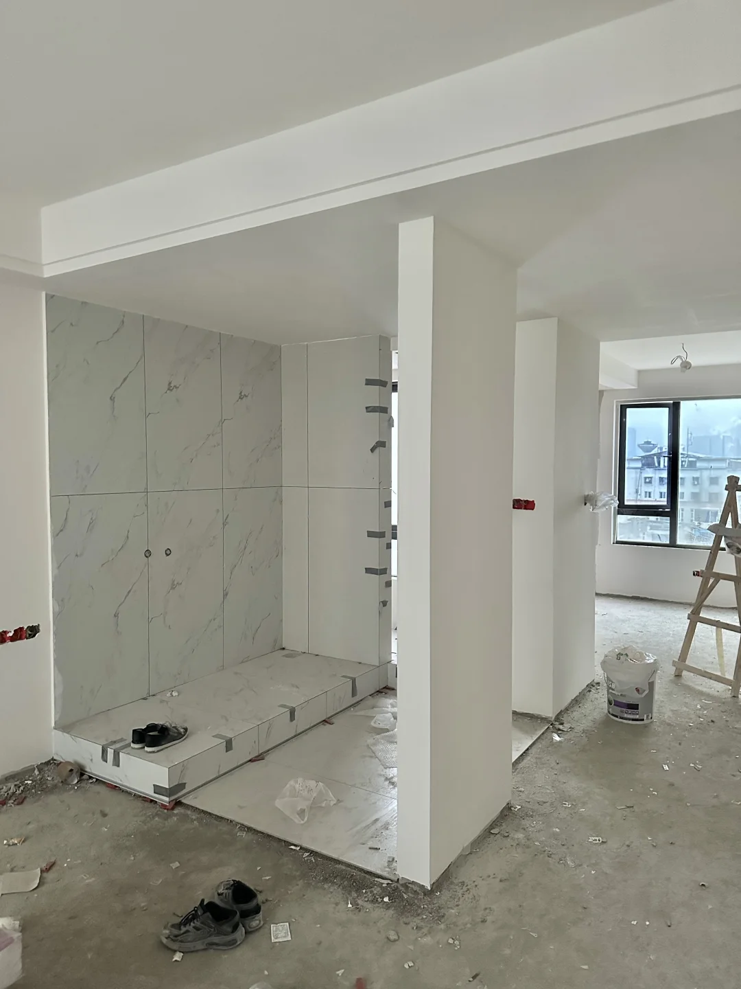 宁可砸穿柱子,也不愿让整块瓷砖断开,这样的通铺贴法真的可行吗?瞧瞧画面中这令人