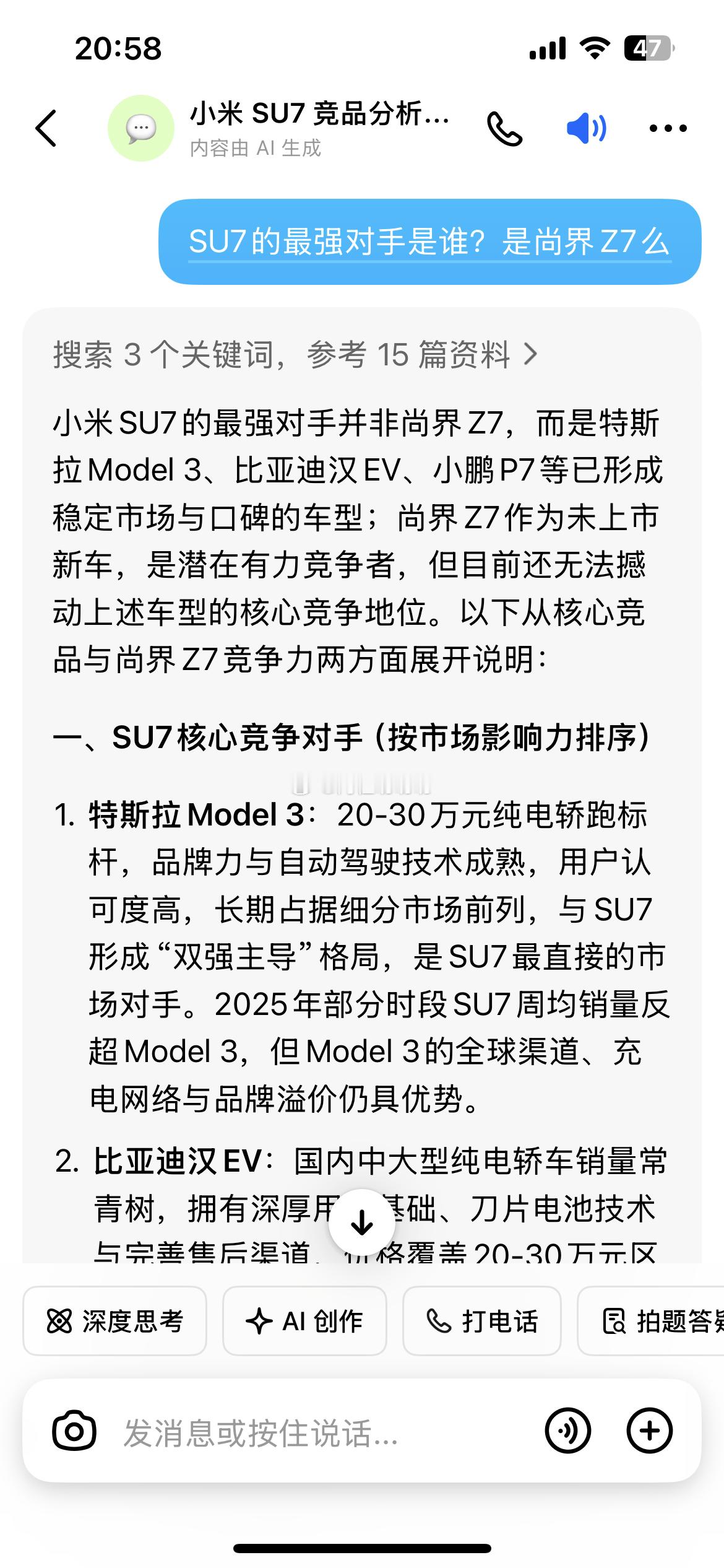 豆包预测尚界Z7或成SU7最强对手 (bushi界也不对啊 ,问了下豆包SU7的最强对手是谁,这不是特斯拉嘛???纯电动汽车