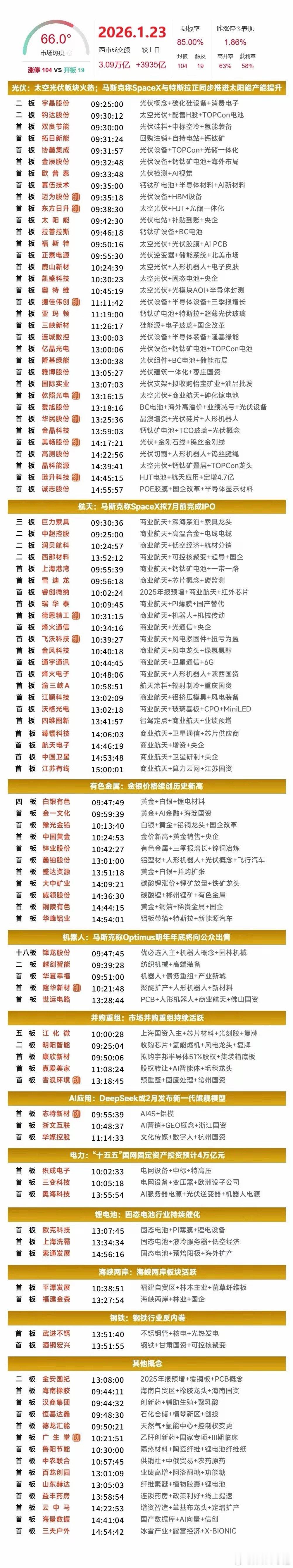 1月23日涨停复盘|太空光伏掀涨停潮,航天连续反弹,锂电池也表现不俗