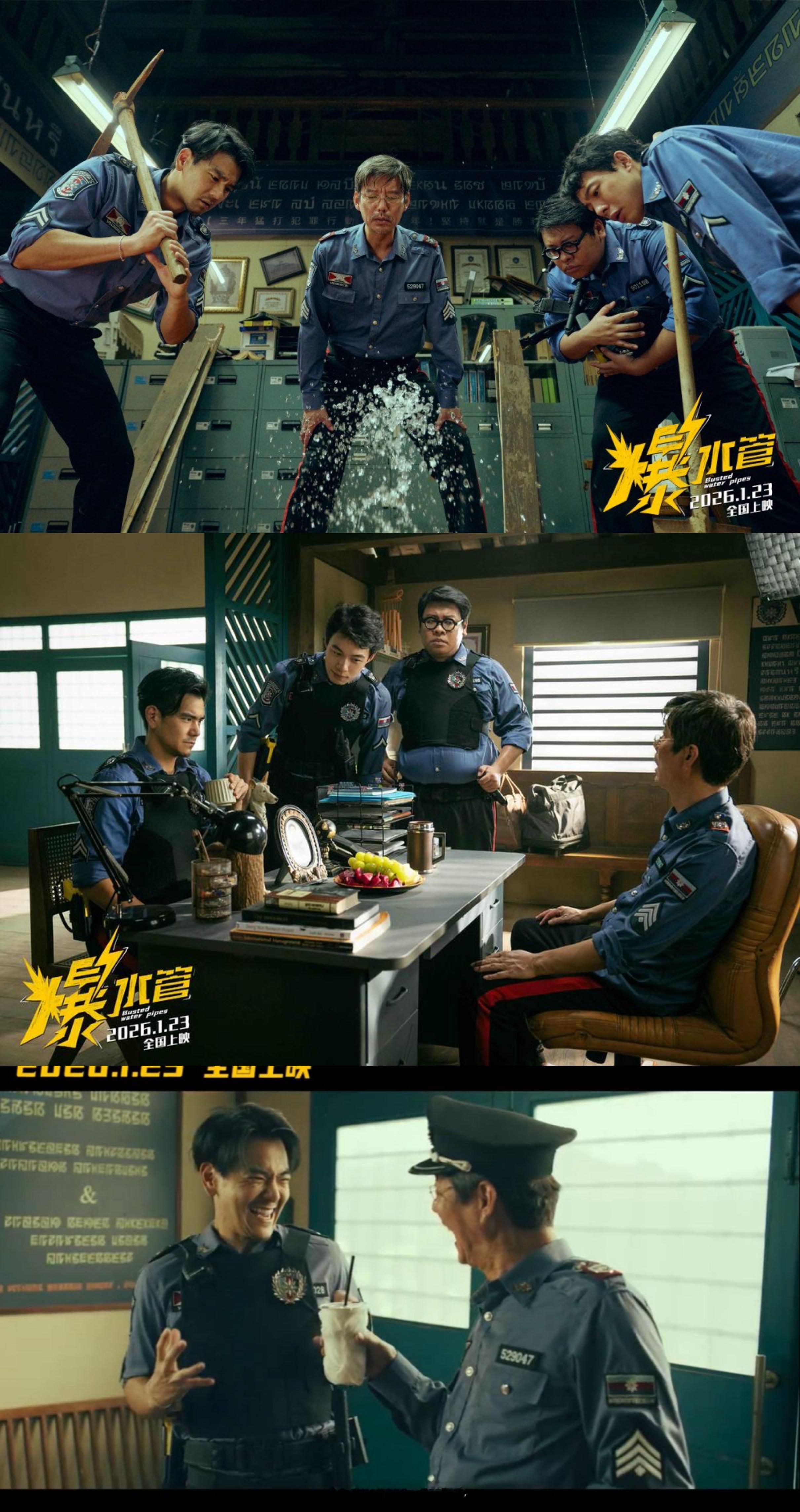 爆水管(2025),电影爆水管今日上映《爆水管》超出意料的好看,太久没看彭于晏演喜剧了,没想到他演的这么优秀。说句实话,我看片前有先刷预告的习惯,看了三个版本的预告,对这片儿的预期并不高,但看过正片后,的确超出预期。寒假不打烊 我看的那场人挺多的,笑声此起彼伏,能听得出来,那种开心是发自内心的。我认为能带给观众快乐,且故事逻辑不凌乱,就算是好电影。而《爆水管》就是这种,1小时43分钟的片长,节奏快到飞起,又不乱。电影的欢乐感靠的不是台词包袱,而是演员的动作和表情,在情节片段里随便凹个造型,任何一个行为举止,都能让人笑。无论彭于晏无辜的微表情,还是杨皓宇的出丑,或是艾伦的张弛有度。这么多喜人,在一部电影里合作,营造出了别样的喜感,而且是连续不断的。电影讲述了一个东南亚小镇中,卷王警察于大海(彭于晏 饰)起早贪黑,努力工作,让小镇连续7年维持0犯罪率。结果因为没有案子,警察将被全员辞退,“铁饭碗”成了“塑料碗”,为保住工作,于大海决定和队友们一起造个大案。与此同时,真正的大案正在发生,前来投奔罗四季(艾伦 饰)的盗墓贼罗浩(周游 饰)、牛大轮(闫佩伦 饰)一家人,盯上了传说中藏有宝藏的古墓,而这个古墓就在警局之下。影片的剧情是紧凑的,用警方、盗墓贼、以及加入乱斗的第三方势力,这块儿我就不过多剧透了,看过片儿的朋友都懂。该片以“精神状态超前”为基调,通过“警察白天办案、晚上作案”的反套路设定,构建出充满黑色幽默的叙事风格。意在传统犯罪题材中融入高浓度喜剧表达,探索内容创新的新路径。对犯罪喜剧类型片,起到了尝试性的实际意义。我一直对开创性的艺术作品,抱着尊重敬畏的态度,无论新模式是否成功,我觉着都是值得试验的,也许一次不成,但下次成了,也等于为市场带来了新的形式。片子看到一半,我才明白电影为什么叫《爆水管》,是他们挖警局地面,碰着下水管了。水管爆了那幕超搞笑,水像喷枪那样直喷,水压很大,把杨皓宇老师演的老警察崩受伤了,给厅里的几十个观众笑的,前仰后合的。片子的故事情节,编写的超巧妙,让一切巧合发生的顺其自然。挖地道碰头,警方、盗墓贼、和复仇罗浩(周游饰)的黑衣男们,在古墓旁展开的决斗,打的天昏地暗,这幕是全片的高潮。快抢,贴身肉搏,盗墓贼们终究什么也没得到,闹了个乌龙。总结下来,《爆水管》是部爆米花电影,邪不胜正、于大海跟女儿间的父子情,虽然这是个点缀,但也增加了些看点。影片的营养虽然不大,但看这片儿是图个乐子。从喜剧展现形式的角度来看,电影是有优点的,新的一年就要高兴点,表演OK,喜感满满,《爆水管》我推荐看。