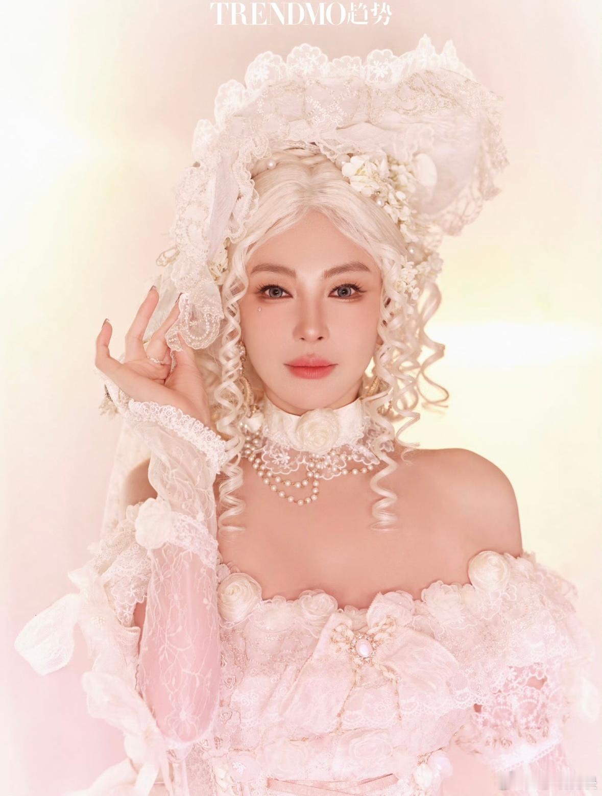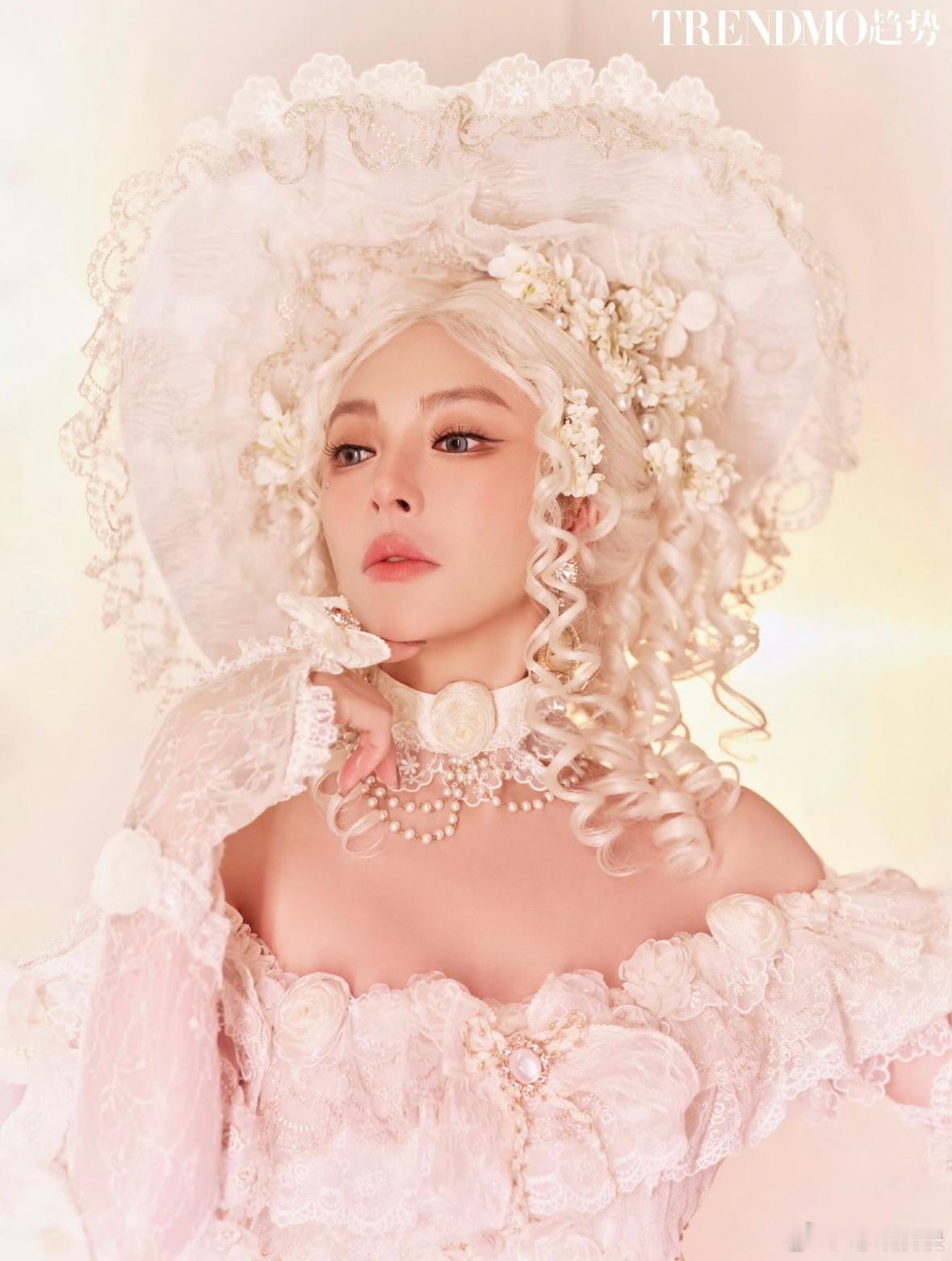 饶嘉迪 人鱼公主上岸了饶嘉迪淡粉紫抹胸纱裙配羽毛麻花辫,锁骨线条绝美,宛若自带柔