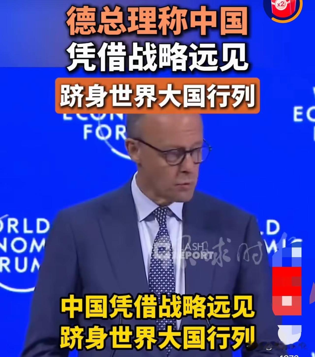 1月22日达沃斯论坛上德国总理默 茨称中国凭战略远见成世界大国,表面肯定实则战略警示,将中国崛起置于大国竞争框架,提醒欧美中国是必须应对的战略力量而非单纯经济伙伴,体现德国中间路线,既符合经济利益又预留政策空间,还强调欧洲团结、提升竞争力推动一体化,推进战略自主并暗示对美制衡。 德总理称中国 凭借战略远见 跻身世界大国行列 FOR )N UA 中国凭借战略远见 跻身世界大国行列