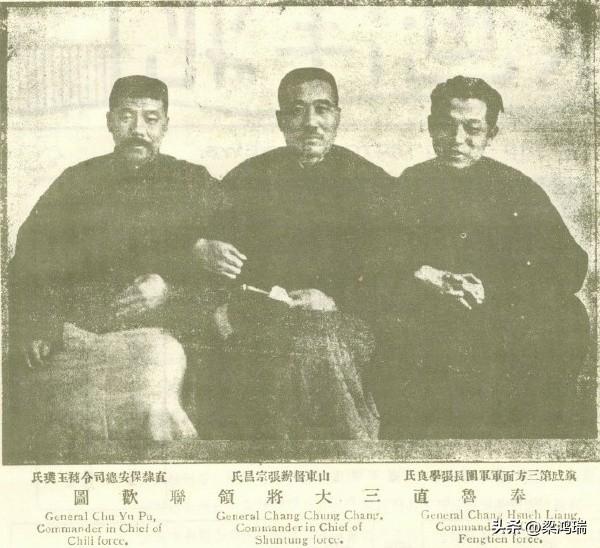 1927年正值北伐战争期间,奉系军阀为了对抗国民革命军,组成了安国军总司令部。 张学良:当时担任安国军第三方面军军团长,是奉系首领张作霖的长子(少帅)。 张宗昌:绰号“狗肉将军”,时任安国军副总司令兼直鲁联军总司令,主政山东。 褚玉璞:张宗昌的部将,时任直鲁联军副总司令、直隶省长,盘踞天津一带。 这次聚会发生于1927年,地点多被认为是在北京或天津,当时三人作为奉系及直鲁联军的核心将领,频繁进行军事会晤以商讨对北伐军的战事部署。 此次聚会留下了一张极具代表性的历史照片,照片中三人并排坐/立。从右至左通常为张学良、张宗昌、褚玉璞。这张照片生动展示了当时奉系势力内“少壮派”(张学良)与“老牌军阀派”(张、褚)的权力交织。 张宗昌和褚玉璞曾与张学良换帖结为异姓兄弟,这种结盟关系在北洋军阀内部十分常见,旨在巩固军事合作。 战友与竞争:尽管是盟友,但张作霖曾评价张学良“斗不过张宗昌”,因此在权力分配上一直维持着微妙的平衡。 这次聚会象征着奉系军阀在1928年“皇姑屯事件”及“东北易帜”前的最后一段联合时期。随后在1928年,随着北伐军的推进和张作霖遇刺,这种三方同盟关系也随之瓦解。