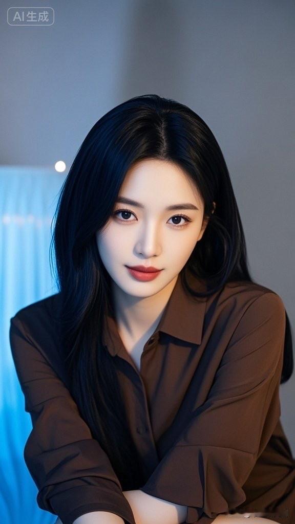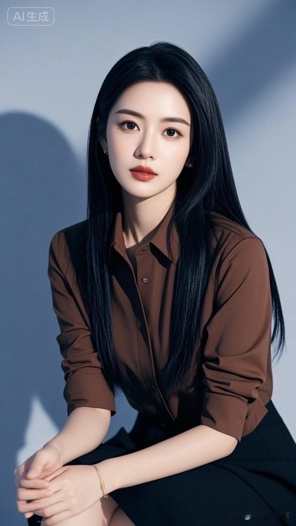 优雅黑裙,自信红唇,AI生成的完美女神