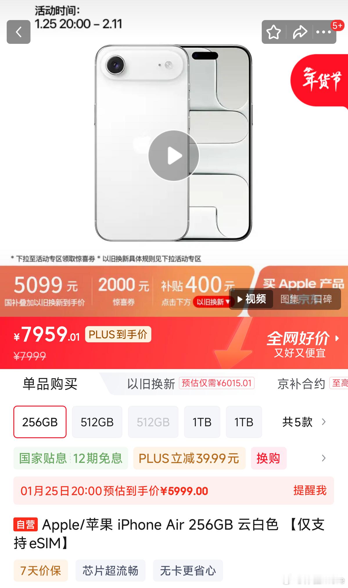 继三星S25 Edge降价2500后,iPhone Air也直降2000,叠加国补只需5499。这俩手机已经杀到荣耀Magic Pro Air的价位区间了。猫有13000台,东直接领2000京喜券,明天晚8点开始,想尝鲜iPhone Air的可以冲。