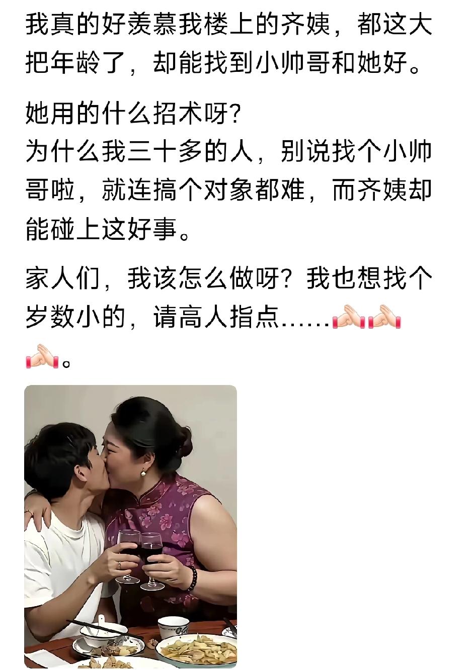 阿姨虽人到中年,既有韵味,又温柔如水,还甜美如蜜桃,自然对一些缺乏母爱,又渴望爱情的小伙子来说,具有致命的诱惑!待把这几项运用精熟了,小伙们自然会前扑后继的向你靠拢的! 年长者的成熟稳重能给予小对象安全感和依靠。人生短暂,如梦似幻。只要你身体素质好,经济条件各方面允许。你想怎么生活有兴趣,你自己的事。 老牛吃嫩草是常见现象,也不分公牛,母牛,但是吃嫩草必须具备二个条件一个是有坚硬的经济条件,这个是首要,常言讲,有钱能使鬼推磨。只要你舍得倒贴肯定是找得到。其次也要有嫩草能看到值得吃的地方,有了经济条件再有某个吸引嫩草的地方何愁吃不到。天崖何处无芳草,努力吧,前方无数嫩草任你吃。年龄不是衡量爱情的标准,感情才是关键。女人是宝,只要有性感,富有女人味,年轻小伙子被吃嫩草,这样的场景,社会上存在不少。 只能用钱才会有这奇葩的同居现象,中国出了多少老男人尿都拉到裤里,还取二十多岁老婆。网上还一片祝福,年龄是自然规律,老了身体各方开始衰退谁也改变不了。50+的阿姨 阿姨 温柔风中年少女 气质单身老阿姨 气质范老阿姨 70多岁阿姨 60岁阿姨爱情
