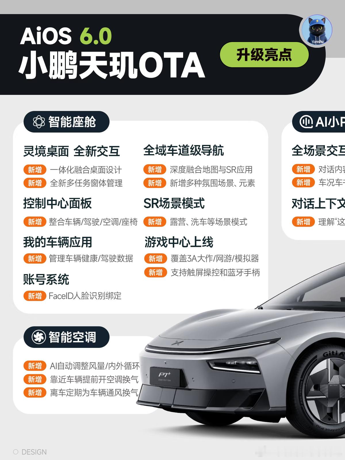 一图看懂OTA | 小鹏天玑AIOS6.0更新!鹏厂的天玑系统迎来大版本更新!全新的界面和交互,融合地图和SR、车道级导航;更聪明的AI小P,主动式服务;3A大作游戏中心等等。你对AIOS6.0有什么看法?评论区一起聊聊小鹏天玑系统6 小鹏天玑AIOS6小鹏汽车