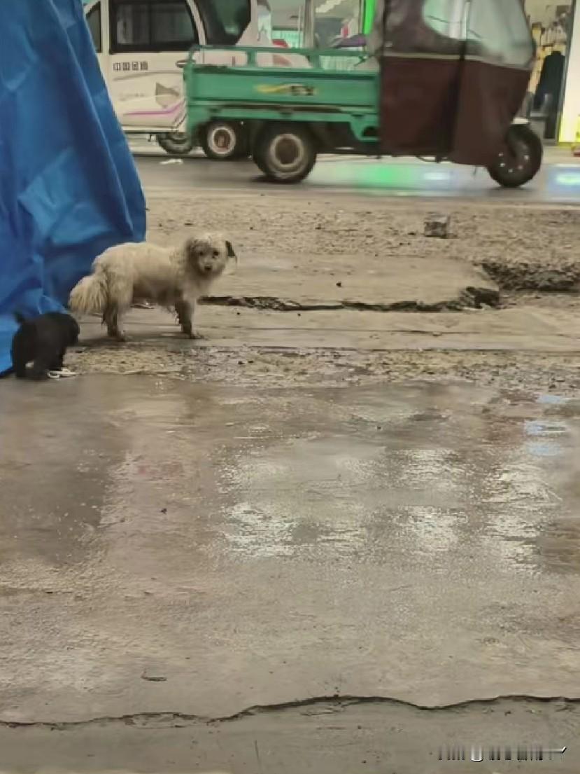 雨天的街头,一只毛色浅淡的流浪狗妈妈,眼神满含恳切地将小黑狗送到一户人家门口。 它亲昵地蹭了蹭小狗,眼神里满是难以消散的不舍,仿佛在低声叮嘱:“孩子,以后这就里就是你的家了,要好好生活。” 它望向那户人家的主人,目光里满是无声的哀求:“请您,一定要好好照顾我的孩子。”做完这一切,它才狠下心转身跑开。 小黑狗不明所以,懵懵懂懂地跌跌撞撞追上去,可狗妈妈却躲在角落,直到看见孩子被那户人家温柔地抱进屋里,才悄悄消失在雨幕深处。 这一幕让我鼻头泛起酸涩,流浪狗妈妈在绝境之中,把生的希望留给了孩子。 这份深沉的母爱,和人类的母爱又有何不同?它们在生存边缘苦苦挣扎,在风雨中艰难求生,却依旧拼尽全力为孩子谋求一份安稳。 我们能做的,便是对流浪生命多些善意,用领养替代购买,给这些小生命一个温暖的家,让每一份如此深沉的爱,都能有一个圆满的归宿。 流浪狗 狗狗流浪