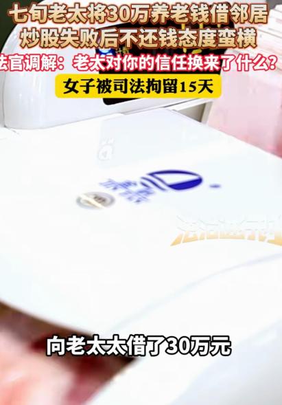 “人性丑到什么地步!”北京,一70多岁大妈,好心借给女邻居30万,女邻居炒股失败后,拒不还钱,还态度嚣张,堵在大妈门口破口大骂:你个老妖婆,我熬你20年,熬死你,让你一分钱也拿不到,我没钱,要么你去告,要么你弄死我!法官:老太对你的信任换来了什么?拘留15天。网友:借钱时是人,还钱的时候就不是了! 北京某老小区,楼不高,墙皮斑驳,住的多是十几二十年的老邻居。70多岁的张大妈在这儿住了快一辈子,老伴去世得早,儿女都在外地工作,她一个人守着这套老房子,日子过得清清静静。 邻居李某,比张大妈小二十来岁,离异,一个人带着孩子。 平时在楼道里遇见,总是一口一个“张姨”,笑得比谁都甜。谁家停电了,她第一个跑来问;谁家忘关水龙头,她也帮着敲门提醒。张大妈心软,觉得这孩子命苦,也就多照顾了几分。 真正的转折,是三年前。 那阵子李某突然开始频繁上门,一坐下就叹气,说自己这些年做生意不容易,好不容易碰上个机会,朋友带着炒股,说是“内部消息”“稳赚不赔”,就差点启动资金。 “张姨,我不是没办法,真不想开这个口。” “您放心,最多一年,我连本带利全还。” 张大妈一开始是拒绝的。30万,对一个老人来说,是一辈子省吃俭用攒下来的养老钱。可李某天天来,说得眼泪汪汪,还把孩子带来,让孩子一口一个“奶奶”,说将来一定给张姨养老。 邻里之间,抬头不见低头见。再加上对方态度诚恳,张大妈心一软,还是把钱借了出去。 没有借条,没有抵押,甚至连录音都没有。 她只说了一句:“孩子,做人要讲良心。” 一年过去,李某没还钱。 张大妈不好意思催,想着人家可能周转慢,就又等了一阵。可慢慢地,李某的态度变了。 电话不接,微信不回。 好不容易在楼道里碰见,对方不是低头玩手机,就是匆匆进门。 直到有一天,张大妈鼓起勇气敲了门。 门一开,李某脸色就变了。 “你又来干嘛?” “我……我就问问钱的事。” “我没钱!” 从那天起,一切撕破脸。 李某不仅不还钱,反而开始在楼道里指桑骂槐,说张大妈“老糊涂”“爱多管闲事”。后来更过分,直接堵在张大妈家门口破口大骂。 “你个老妖婆!” “你急什么?你还能活几年?” “我熬你20年,熬死你,这钱就是我的!” 楼道里邻居都听傻了。 张大妈站在门里,手扶着门框,气得浑身发抖。她怎么也没想到,当初自己一念善心,换来的竟是这样的羞辱。 最狠的一句,是李某拍着胸口吼出来的: “我没钱!要么你去告,要么你弄死我!” 那天之后,张大妈病了一场。 高血压飙升,整宿睡不着。她给远在外地的儿子打电话,声音都是抖的。儿子听完,当场拍桌子:“这钱必须要!这不是钱的问题,是人不能这么欺负人!” 在儿女的坚持下,张大妈报了警,又起诉到了法院。 法庭上,李某依旧一副“死猪不怕开水烫”的样子。 法官问她:“钱是不是你借的?” 她点头。“为什么不还?” 她冷笑:“我炒股亏了,没钱。” 法官皱眉:“那你对老人辱骂、威胁,是事实吗?” 李某耸耸肩:“我就说了几句实话。” 法官当场提高了声音: “老太太对你的信任,换来了什么?” “换来的是羞辱、恐吓,还有良心的彻底缺失!” 最终,法院依法裁定李某限期还款,同时因多次当众辱骂、威胁老人,构成违法行为,司法拘留15天。 当法槌落下的那一刻,张大妈坐在旁听席上,眼泪止不住地往下掉。 不是因为钱,是因为心寒。 这事传到网上后,评论区炸了。 有人说:“借钱的时候是人,还钱的时候就不是了。” 有人说:“不是老人太傻,是坏人太狠。” 还有人一句话点破:“她赌输的不是股票,是人性。” 张大妈后来拿回了部分钱,但再也没和任何邻居有过金钱往来。她常说的一句话是:“钱没了还能再省,良心没了,就什么都没了。” 这件事,也给无数人敲了警钟——善良,一旦遇上无底线的人,真的会变成伤害自己的刀。
