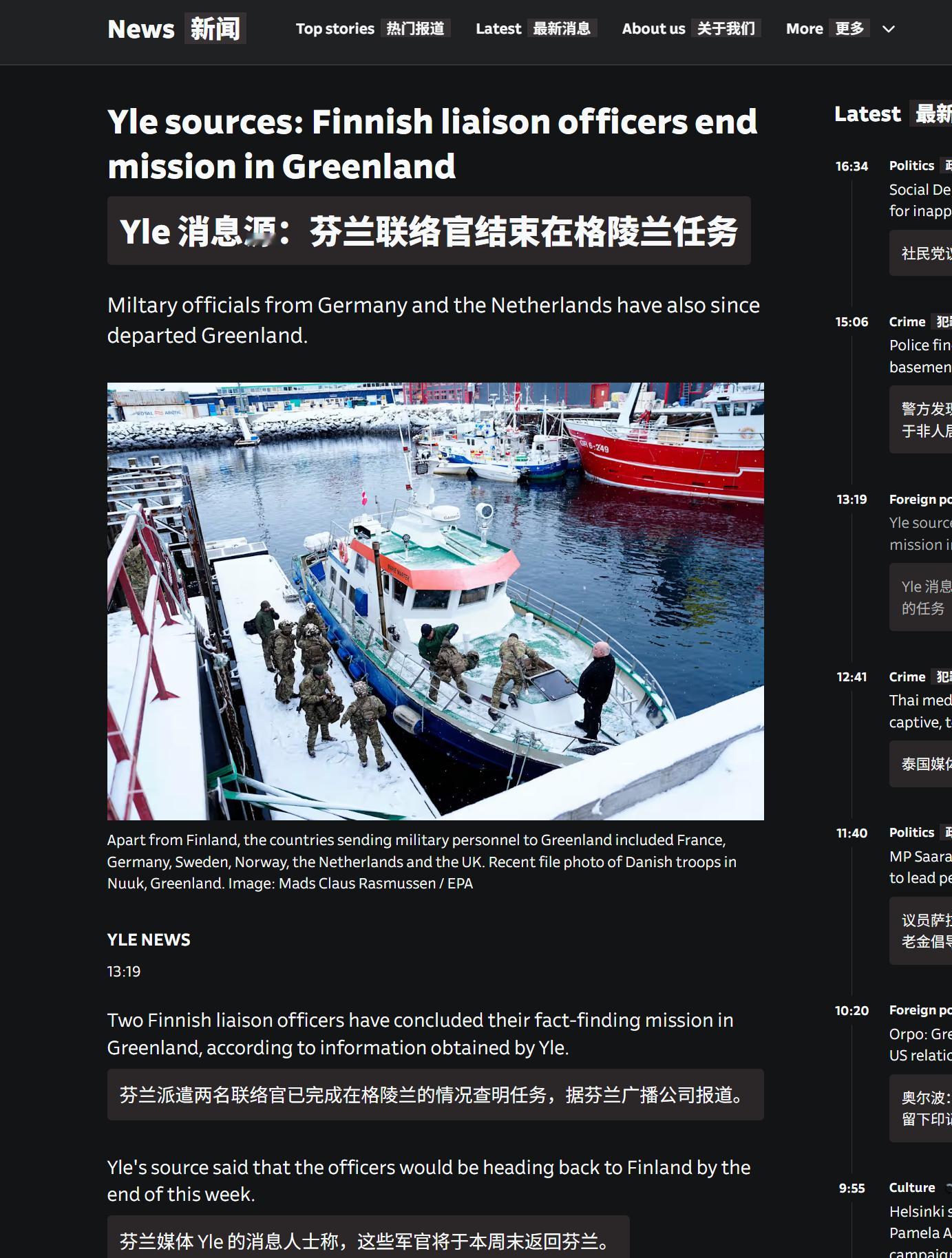 🔻芬兰军队宣布在格陵兰的任务结束,芬兰军队将在本周内撤离格陵兰。🔻芬兰军队共派去 2 人🔻via Yle 新闻特朗普为啥时隔一天态度变了 热点现场 海外新鲜事