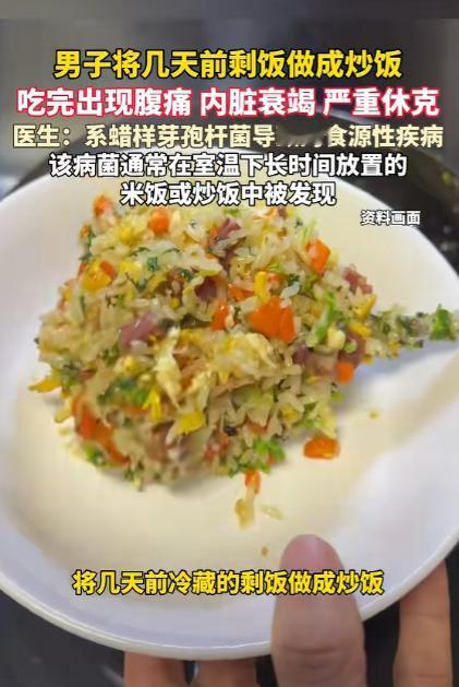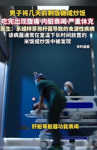 “悲剧还是发生了!”近日,广东,一名男子为了不浪费几口剩饭,就把冰箱里放了几天的冷饭做成炒饭吃下肚,结果不到两小时就突发剧烈腹痛、上吐下泻,很快陷入休克,送医后竟被确诊为内脏衰竭!网友:剩饭也不能吃了? 1月22号,广东一男子当天在家收拾冰箱,翻出几碗前几天吃剩的冷米饭,瞅着米粒还好好的,扔了总觉得可惜,没做任何额外处理,直接上锅简单翻炒了几下就端上桌吃了。 吃完炒饭他还跟平常一样窝在沙发上刷手机,可没坐多久,肚子就开始不对劲了,一开始他还以为是吃太快噎着了,肠胃临时闹脾气,想着忍忍就过去了,压根没往心里去。 可这疼痛感来得又猛又烈,没几分钟就变成了钻心的绞痛,紧接着上吐下泻的症状跟着来,十几分钟里吐了七八次,腹泻也止不住,整个人瞬间浑身发软、脸色惨白如纸,连站都站不起来。 家人发现他这副模样,当场就吓懵了,手忙脚乱拨通 120,等救护车赶到时,大哥已经血压骤降、意识模糊,陷入了严重的休克状态,整个人奄奄一息,情况危急到了极点。 被送进医院急诊室后,医护人员立刻开启了紧急抢救,补液、抗休克、实时监测生命体征,一系列抢救操作同步进行,同时给男子做了全面的身体检查。 血常规、肝肾功能、电解质等多项关键指标全部严重异常,明明白白显示出内脏衰竭的迹象。 经过进一步的致病菌专项检测,医生终于揪出了幕后元凶,确诊大哥患上了由蜡样芽孢杆菌引发的重度食源性疾病,而这种致命的病菌,就藏在那碗放置了数天的剩饭里,在他体内引发了剧烈的中毒反应,才造成了这般严重的后果。 蜡样芽孢杆菌是生活中十分常见的食源性致病菌,这种病菌尤其偏爱室温下长时间放置的米饭或炒饭,在这类食物里极易大量滋生,由它引发的急性中毒,在日常饮食中其实并不少见,还被不少专业人士称作 “炒饭综合征”。 蜡样芽孢杆菌可怕之处,从来不是病菌本身,而是它在特定条件下会形成一种芽孢结构,这层芽孢就像给病菌穿了一层刀枪不入的 “金钟罩”,抗逆性强到离谱。 普通的煮沸、冰箱冷冻根本杀不死它,就连紫外线、日常用的消毒剂,对它也几乎起不到任何作用,能在各种环境里潜伏数月甚至数年,就等着合适的时机 “苏醒”。 这种毒素不怕胃酸,也不怕人体的消化酶,能顺利通过胃部到达肠道,不仅会引发剧烈的胃肠道反应,严重时还会破坏肝脏细胞,影响人体各个脏器的正常功能。 这也是该男子会出现内脏衰竭的核心原因,而腹泻型毒素虽然相对 “娇气”,56℃加热 5 分钟就能被去除,但剩饭在放置过程中,两种毒素往往会同时产生,只靠简单的翻炒,根本无法做到彻底解毒。 其实因蜡样芽孢杆菌引发的食源性中毒,早有不少案例发生,曾经青岛一所中学的食堂,就因为将隔夜的米饭加热后卖给学生,导致多名学生集体出现呕吐、腹痛、腹泻的中毒症状。 经查正是蜡样芽孢杆菌作祟,涉事的食堂经理和厨师长也因生产、销售不符合安全标准的食品罪被依法判刑。 这件事被发到网上后,瞬间引发了网友的广泛热议,不少人看完后都心有余悸,纷纷留言说自己平时也经常吃剩饭,现在想想都觉得后怕。 还有很多网友发出了灵魂拷问:难道剩饭从此以后就真的不能吃了?毕竟勤俭节约是传下来的美德,不管是老人还是年轻人,不少家庭都有吃剩菜剩饭的习惯,一下子让大家把没坏的剩饭全丢掉,难免会觉得可惜。 其实答案并不是绝对的,剩饭并不是说碰都不能碰,关键是咱得掌握正确的储存和食用方法,毕竟冰箱从来都不是食物的 “保险箱”,这是很多人都容易踩的误区。 数据显示,米饭煮好后,室温放置超 2 小时,蜡样芽孢杆菌的检出率会从不足 10% 飙升至 85% 以上,所以煮好的米饭要是吃不完,一定要及时用密封的保鲜盒或保鲜袋装起来,尽快放入 4℃以下的冰箱冷藏。 而且冷藏时间最好别超过 24 小时,冷藏超过 48 小时的剩饭,毒素含量大概率会达到致毒剂量。 另外,反复冷藏、回温的剩饭也不建议食用,因为每一次的回温,都会让病菌有机会再次繁殖,毒素也会不断累积,大大增加中毒的风险。 珍惜粮食是值得提倡的美德,但珍惜粮食的前提,是保证自身的饮食安全。 食品安全无小事,看似不起眼的饮食习惯,背后藏着的是对自身健康的守护,只有掌握科学的饮食知识,才能真正做到既珍惜粮食,又远离食源性疾病的威胁。 对于这件事,您有什么想说的吗?欢迎评论区留言讨论。 信源:杭州网2026-01-23——《男子将几天前剩饭 做成炒饭,吃完出现腹痛、内脏衰竭、严重休克…》