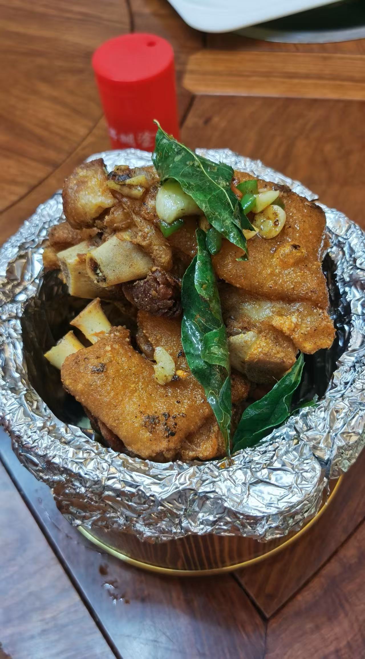 5️⃣.老友紫苏炒牛肉、特色羊血肠、香叶木桶猪手等值得点。