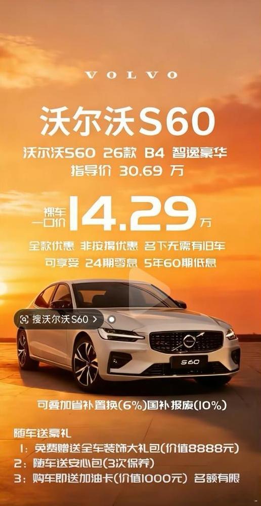 一大清早。特斯拉5年0息,7年低息。沃尔沃S60,14.29万起。
