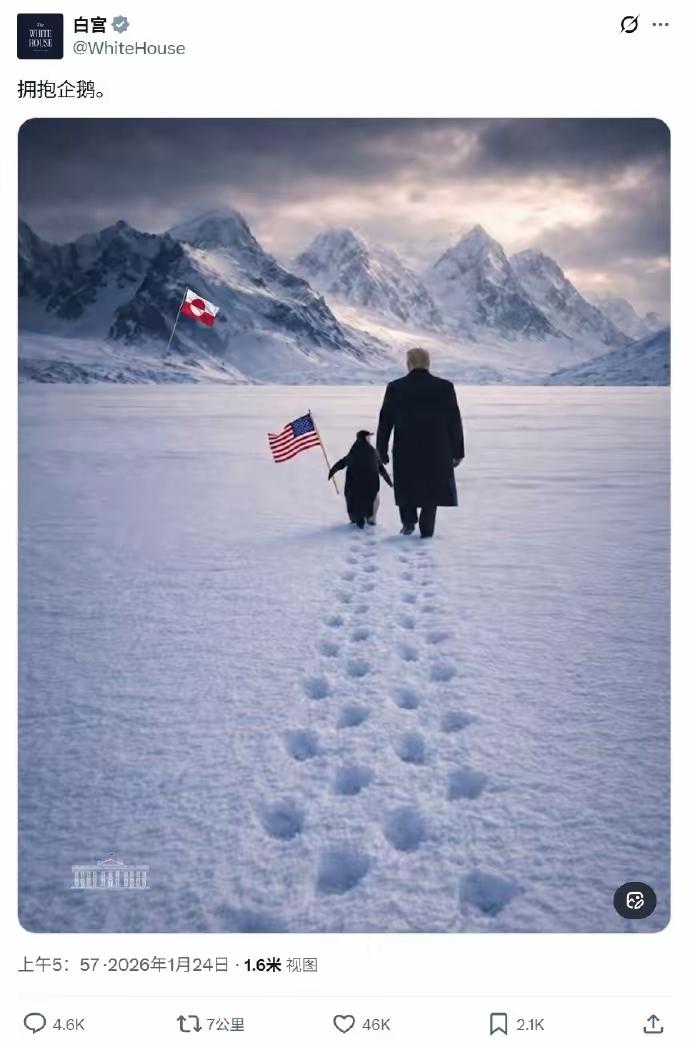 有些人认为税宗没有文化,北极是没有企鹅🐧的,这幅画白宫犯了一个常识性错误。其实是他们错了,他们完全没有懂美税宗的开疆拓土想法。 他想的是要把从南极到北极打通,拥有整个美洲,而不只是格陵兰岛那么简单。 中南美洲的朋友们,你们看到税宗的野心了吗? 点右上角关注我,我们一起去看这个魔幻的世界