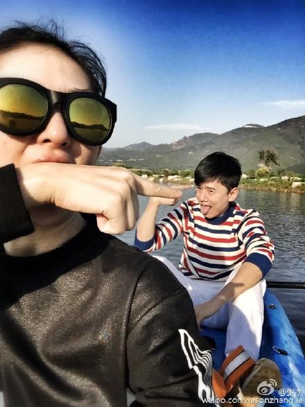 张杰和王力宏合影,王力宏不知在想啥,张杰坐在一旁看起来不高的样子。不过虽然张杰不
