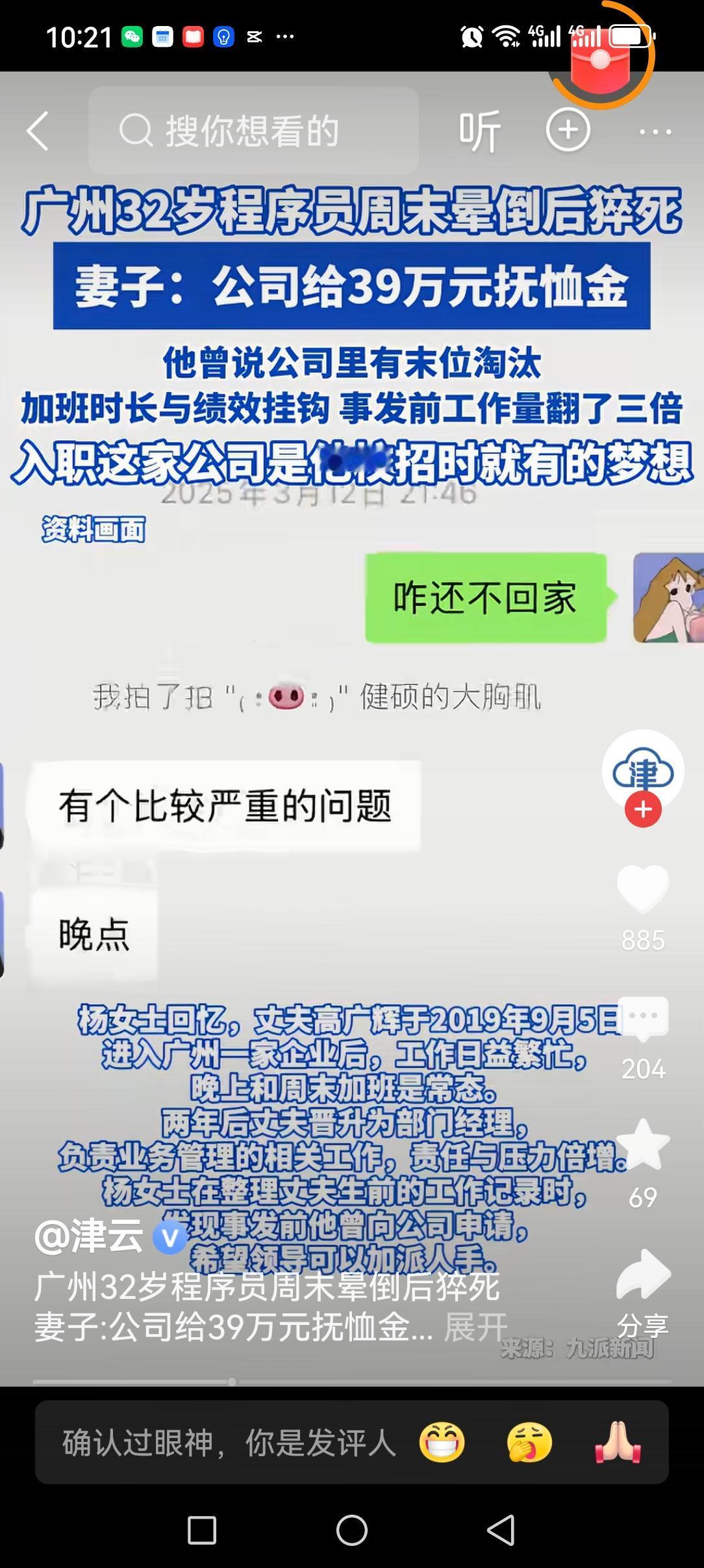 你若喜欢吃苦,就会有吃不完的苦! 河南32岁的程序员高广辉,用自己的生平诠释了这句话! 他出生在河南,小时候在老家因为和别人共用一个针管打针,感染了乙肝。 母亲在家务农,父亲常年在广东打工,十岁时和母亲去了广东,转学在当地读书。 读书时,因为是外地人,经常被同学霸凌。 父母都是打工人,挣钱不多,他小时候就知道勤俭持家。经常捡瓶子卖废品,上大学也是自己兼职完成的。 在广东住过地下室,出租房。进了自己心仪的公司后,为了得到领导的赏识。一个人干七个人的活,一天二十四小时待命。 好不容易他苦尽甘来,买了属于自己的房子,也升职了,还和妻子商量准备要一个自己的宝宝。 没有想到他积劳成疾,周末在家突发心梗猝死了! 死前还有公司发来的让他修改的文件。 他再也不会那么拼命了!
