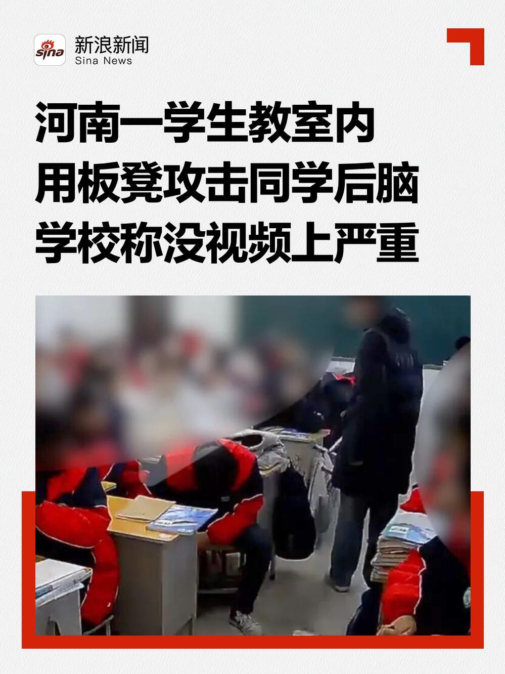 网上前天传了一段监控视频,看得人心里一紧。 视频里是2026年1月13号,河南巩义一所叫“京师杜甫公学”的教室。学生坐得满满的,后排一个男生突然抄起凳子,走到前排,抡起来就砸在前面同学的后脑勺上。 被砸的那个孩子头“咚”一声磕在桌上,勉强撑起来坐直,没几秒头又垂了下去。 打人的学生倒是很“镇定”,扔了凳子就回自己座位去了,旁边几个同学赶紧围过来看受伤的男生。 视频一出来就炸了,谁看了不生气?后脑勺哪能这样砸,万一出人命怎么办? 有记者跑去问学校。 第一个接电话的工作人员说:“一点事都没有,现在已经回学校上课了。实际没打到,是视角问题。吓他的,学生能有那么心狠吗?打人的已经转学了。” 另一个工作人员说得委婉点,说学校已经处理过了,没视频上那么严重,被打的孩子第二天就正常上课了,打人的被开除了。 他还补了几句:“哪个学生都有冲动的时候……教育是劝人归善的,希望不要再打扰这两名同学了。” 辖区派出所的人也回应了,说从学校那边了解到,双方应该和解了,孩子没事,“只是看着动作比较大”。 看完这些回应,心里挺不是滋味的。 视频清清楚楚拍到了砸下去的动作,被砸孩子的反应也不像“没事”,可到了官方嘴里,就成了“视角问题”“动作大”。 当然,我们都不希望孩子真出事,但如果总这样“淡化处理”,下次再有类似的事情,会不会又被轻描淡写地盖过去? 校园安全不是“和解”了就结束了。 孩子之间动手到这种程度,已经不只是“冲动”能解释的了。学校该做的,除了处理当事人,更应该想想:为什么教室里有这样的事发生?平时的心理观察和冲突疏导做到位了吗? 这件事目前看似乎“平息”了,但它留给我们的疑问一点没少: 调查过程公开了吗?受伤孩子的医疗检查结果有吗?心理状况有人跟进吗? 光是“已经转学”“已经开除”,好像问题就随着这个学生离开而解决了——其实没有,它还在那儿。 希望每个孩子在学校里,是真的安全,而不只是“看起来没事”。 (信息来源:潇湘晨报及相关回应)