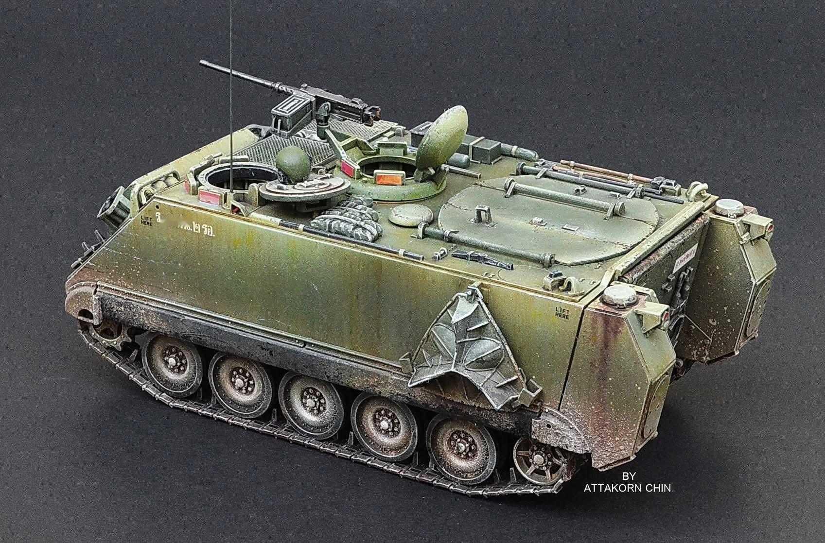 同样是来自军模玩家Attakorn Chin的作品,本次泰柬冲突中泰国皇家陆军使用的M1064A3重型迫击炮运载车,由于是火力支援车辆所以并没有像上一个作品M113A2那样显得非常泰国特色,不过该有的细节基本一样不落了,图8和图9还展示了在制作过程中他用上的一些额外细节改件。作者表示之后会把本次冲突中泰军使用过的载具尽可能的都做一遍。泰柬冲突烽火问鼎计划军迷天地