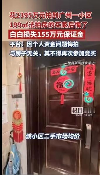 在广州海珠区的保利天悦小区,一场关于豪宅的法拍戏码刚刚落幕,留下的是一声叹息和一张155万元的“罚单”。这套位于广州顶级地段的199平方米房产,本来已经以2395万元的高价成交,结果买家邱某在最后关头选择了“躺平”,没支付余款。这一悔拍不要紧,不仅155万元的保证金打了水漂,人还被法院拉黑,禁止再次参与竞买。这事儿一出,立马在网络上炸开了锅,吃瓜群众们脑洞大开,各种猜测层出不穷。 咱们先来复盘一下这笔让人心跳加速的交易。这套房子的起拍价定在1555.78万元,评估单价大约是每平米101021元。这在寸土寸金的广州其实并不算夸张,甚至可以说有点“良心”。但是拍卖场上的火药味一旦浓起来,价格就不是数字游戏了,而是心理战。经过一番激烈的角逐,最终成交价定格在2395.08万元。折算下来,单价达到了惊人的12万元/平方米。这比小区里差不多二手房10万元/平方米的均价,足足高出了20%的溢价。 说实话,溢价20%在法拍市场里并不罕见,尤其是这种位于核心区、配套成熟的豪宅。但问题是,这多出来的几百万,到底是真金白银的购买力,还是肾上腺素飙升后的冲动? 这就不得不提网友们的犀利点评了。有人觉得这买家邱某根本不是真想买,而是个“托”。广东的网友“朵朵沐紫29a6”就直言不讳:“买家请的托抬价,没想到没人跟了”。吉林的“亚洲橙魔”也附和:“一看就是抬价,后面没人跟,砸自己手上了”。这种推测并非空穴来风。在拍卖场上,确实存在通过“假竞买”来推高价格的操作。原本计划是把价格哄上去,让真正的竞争对手知难而退,或者帮委托人卖个好价钱。万一没控制好尺度,自己成了“接盘侠”,那就尴尬了。155万的保证金,对于能操作这种局的人来说,或许只是生意成本的一部分。 不过,也有一种更为理性的声音。河北的网友“性格老和尚”就说:“你们以为损失155万保证金。其实他赚了。及时止损”。这话说得挺有深意。咱们不妨算一笔账。如果邱某真的硬着头皮付清了尾款,拿下这套单价12万的房子,后续可能面临更大的亏损。虽然保利天悦是豪宅,但在这个市场环境下,远高于市场价的接盘行为本身就风险巨大。一旦这房子再次流拍,或者价格下跌,亏掉的可就不止是这155万了。从这个角度看,牺牲掉保证金来断尾求生,或许是一种无奈但止损的策略。 对于围观者或者打算参与法拍的朋友来说,这个案例其实是个绝佳的教材。平台方面也回应了,邱某悔拍是因为个人资金问题,跟房子本身的质量没关系。这其实是在告诉大家,法拍有风险,入市需谨慎。这里面的风险不仅仅是资金链断裂,还有对自己心理价位的把控。 法院的处理也相当干脆利落:保证金没收,禁止重拍。这既是对规则的重申,也是对恶意炒作行为的一种震慑。目前,这套房子已经重新挂拍了,起拍价又回到了1555.78万元。对于那些真正有购房需求的人来说,这或许是个机会。经过上一轮的热度炒作,这套房子的关注度肯定是顶级的,但这一次,大家出价的手恐怕会抖上一抖,毕竟谁也不想当那个花了2395万最后还要悔拍的冤大头。 买房这事,无论是一手、二手还是法拍,终究得回归价值本身。被情绪裹挟出的高价,往往需要买单者用真金白银来埋单。邱某的155万教训,值不值得,每个人心里都有一杆秤。但至少,它给燥热的法拍市场浇了一盆冷水,让大家冷静下来思考:房子的价值,到底在砖瓦,还是在人心? 以上内容仅供参考和借鉴