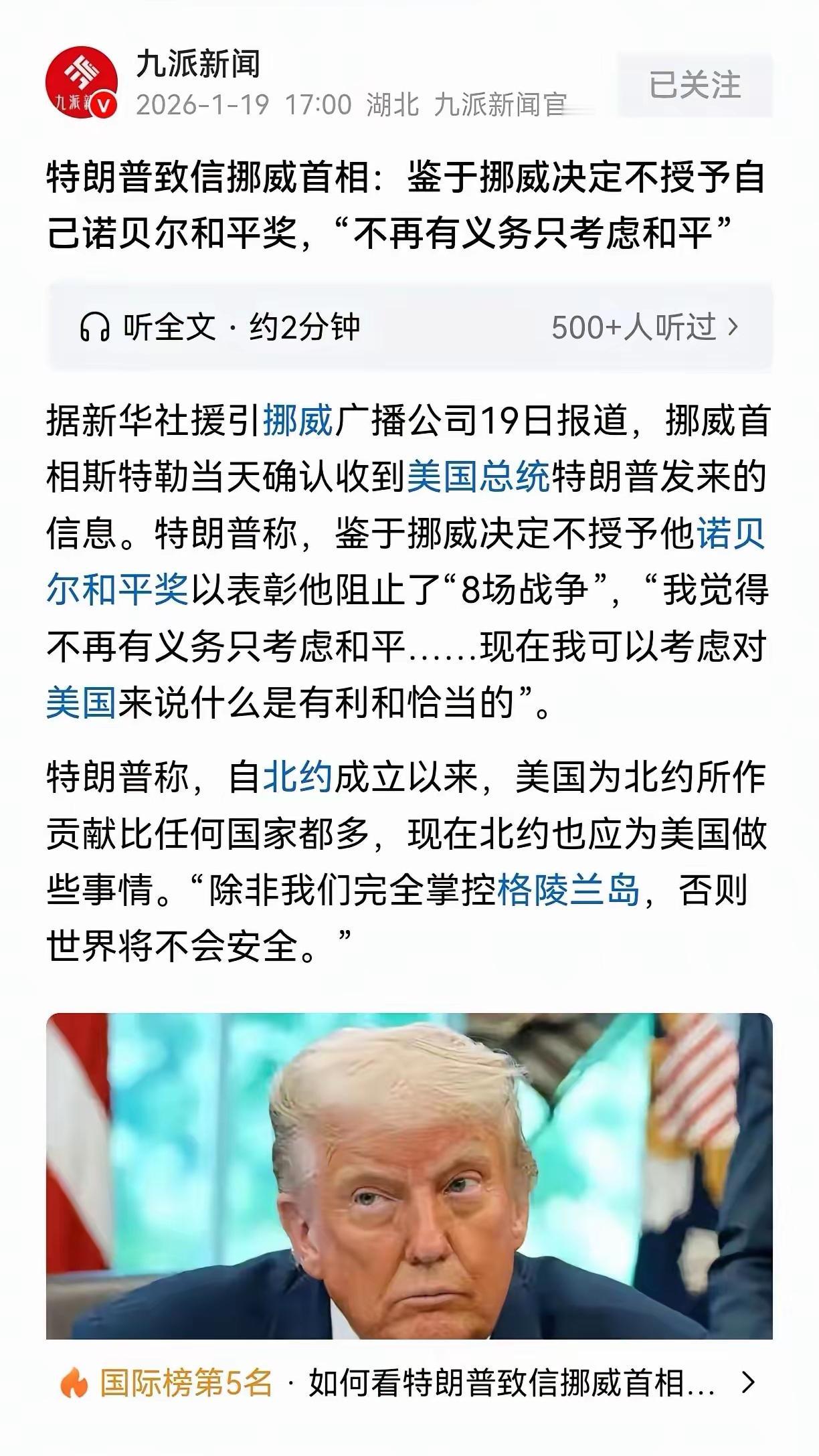 诺贝尔做梦也想不到,他有朝一日要替特朗普背格陵兰的锅!