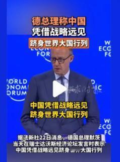 德国总理在达沃斯论坛上说了一句话引人深思,他说中国靠着自身的远见成为一个大国,一个不受外界影响的大国。 为什么他这样有感而发,其实是对现在欧洲唯唯诺诺态度的不满,如果欧洲想中国这样估计也不用看美国的脸色。 当初欧洲大部分国家都笑话中国,为什么不跟着美国的脚步走而是坚持走自己的路,这条路不但难走而且没什么好处。 但是当美国要格陵兰岛的时候欧洲傻眼了,自己跟美国这么长时间,没有功劳也有苦劳,怎么要对盟友下手。 本来想要反抗,但是发现自己跟美国已经深度绑定,离开美国自己什么都不是,在看看中国,能跟美国打贸易战,而且还得到了发展的机会。 欧洲现在连出兵都要看特朗普的脸上,一来一去落差就大了。