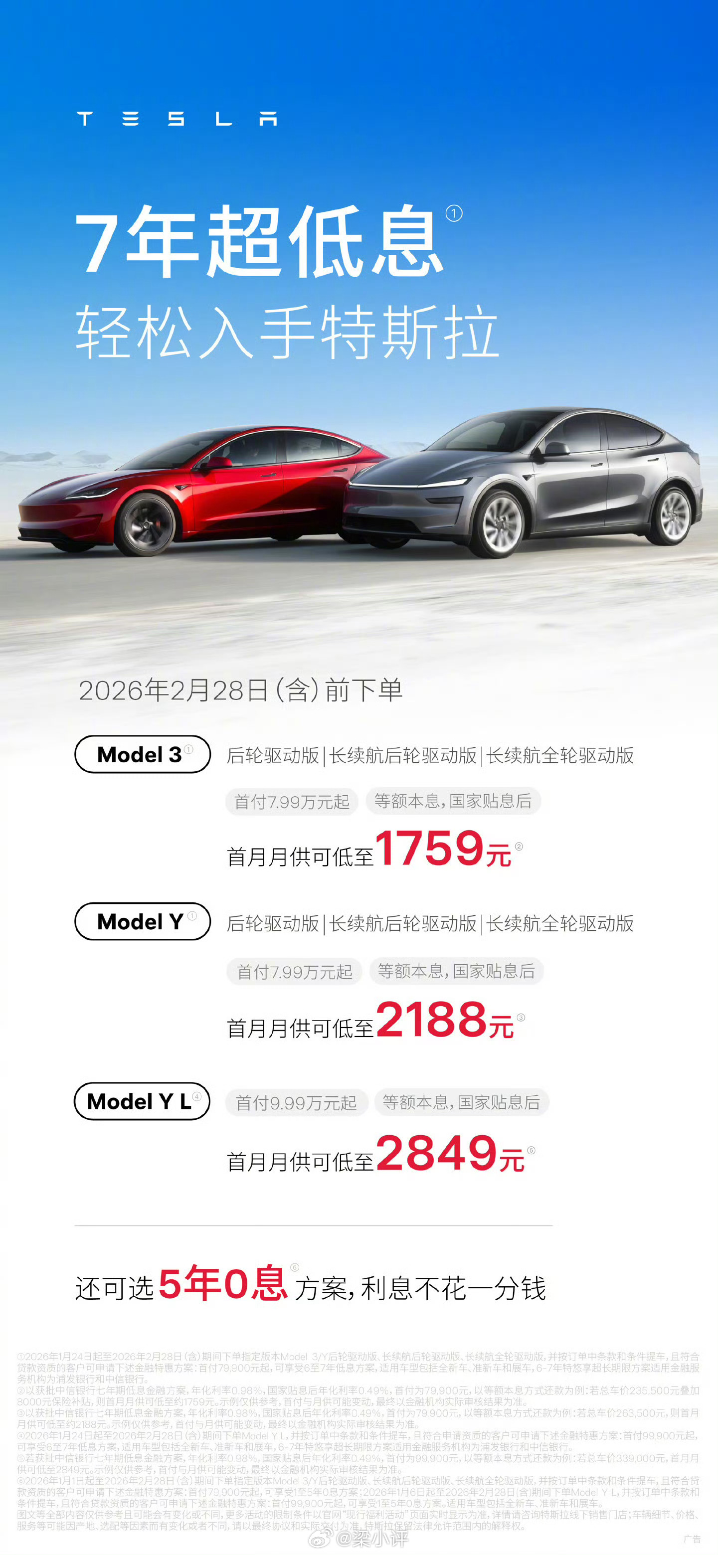 特斯拉 Model 3 推出 8000 元限时保险补贴,支持 7 年超低息即日起至2月28日,订购指定版本可享8000元保险补贴。同时提供首付7.99万元起、国家贴息后首月月供低至1759元的7年超低息方案等。又便宜8000块钱。买吗?