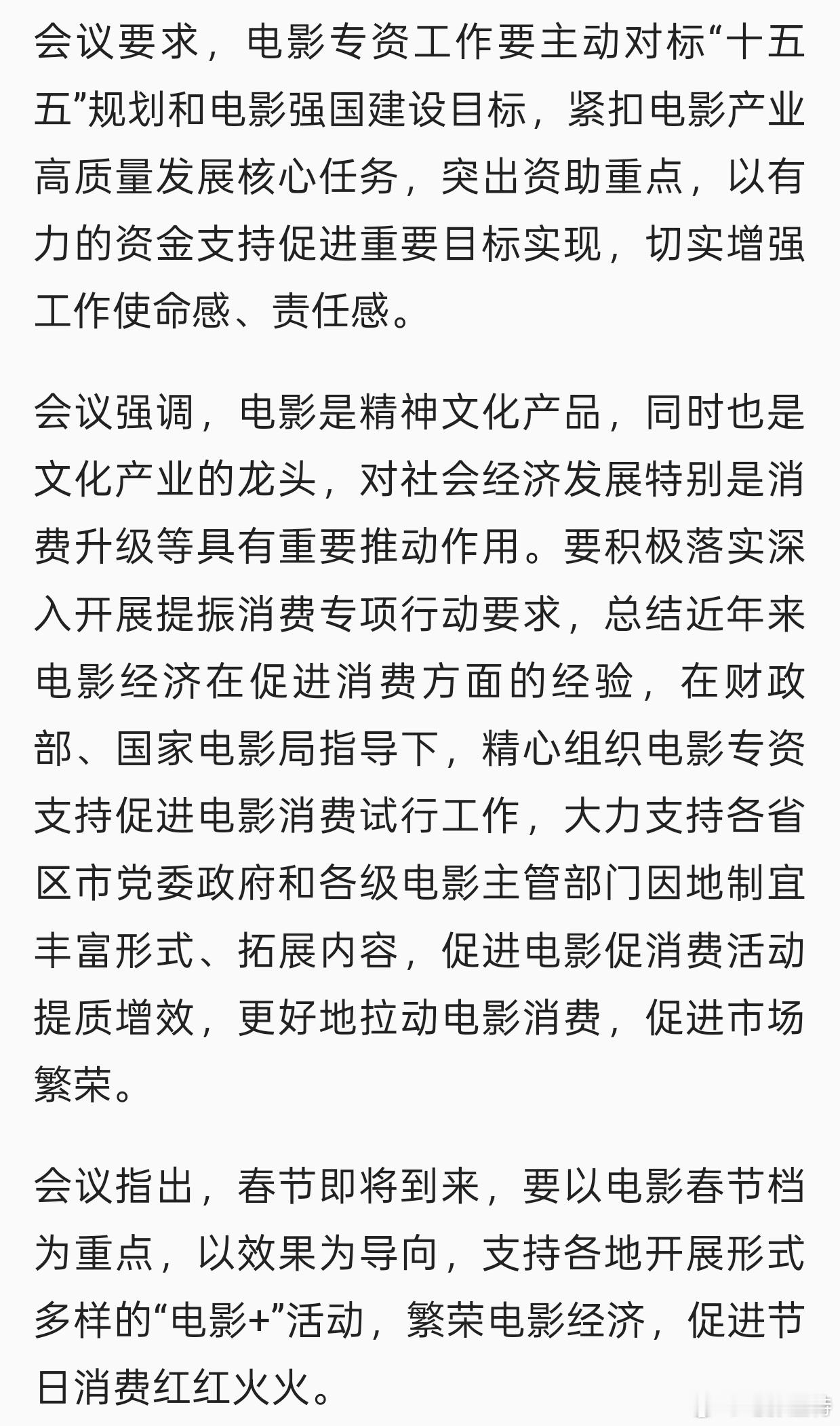 听听温特怎么说转载央视新闻: 备战春节档!国家电影专资管委会召开全体会议。春节即将到来,要以电影春节档为重点,以效果为导向,支持各地开展形式多样的“电影+”活动,繁荣电影经济,促进节日消费红红火火。