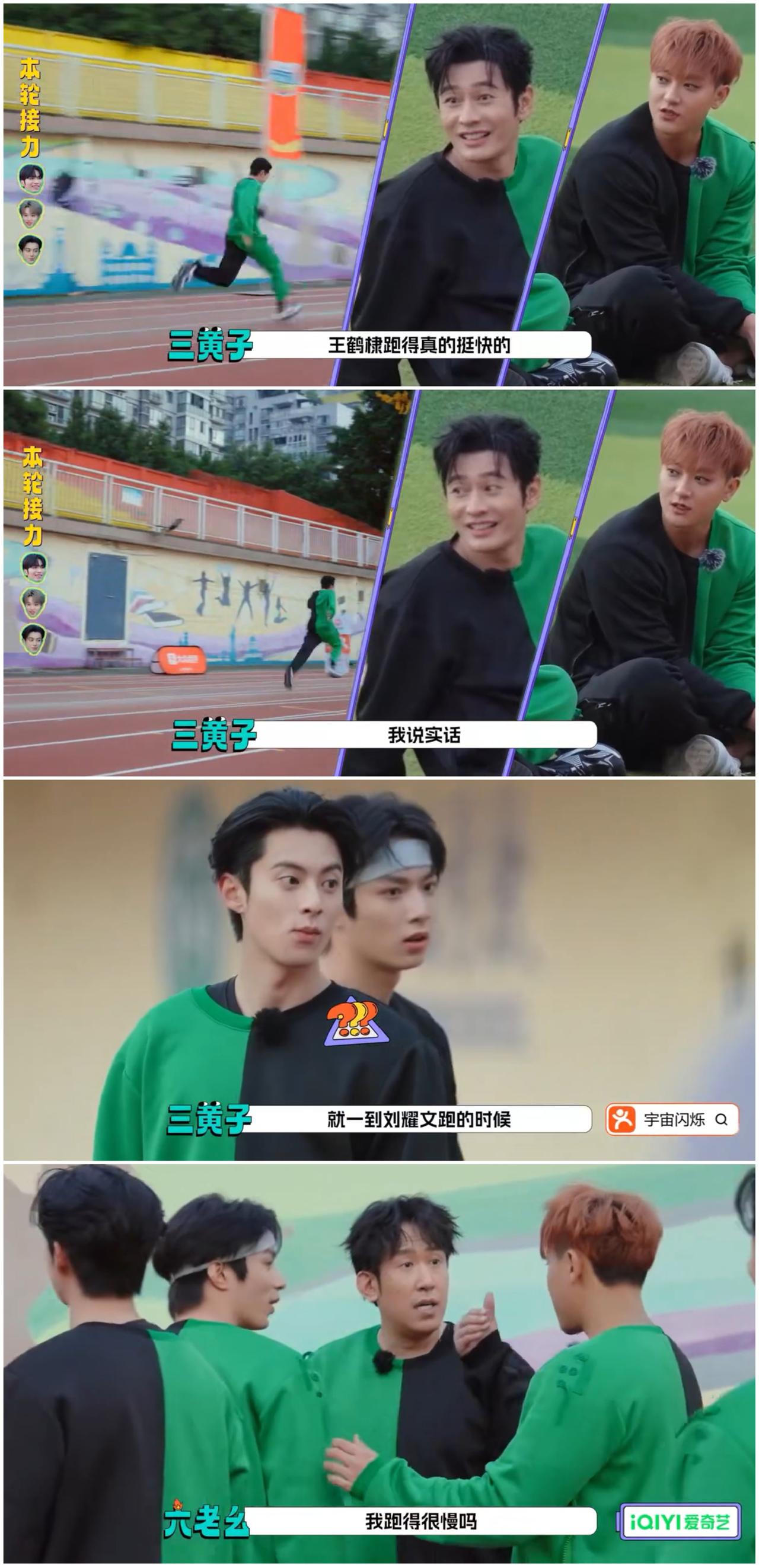 这一幕, 黄晓明一点都没有想到, 刘耀文太没有面子了, 王鹤棣,邵子恒 “狠心”把刘耀文“踢出局”。 黄晓明他们录制节目 进行100米接力跑 挑战比轻轨快。 黄晓明跑得比较慢 是意料之中的事情。 但是在这个挑战过程 发生了出乎所有人意料的一幕。 在这个节目里最年轻的刘耀文 居然跑得很慢, 拖了后腿, 导致挑战失败。 于是本来刘耀文,邵子恒, 王鹤棣, 三人组成的“弟弟队”, 不得不决定把刘耀文踢出局。 剩下邵子恒, 王鹤棣两人100米接力跑, 结果他们两个人挑战轻轨成功了。 这下刘耀文更加没有面子了, 这样更加证实就是他一个人拖了后腿。 你说 刘耀文20岁 邵子恒21岁, 王鹤棣27岁。 网友都以为刘耀文会跑得快一点, 结果他跑得那么慢。 这样看来他平时缺少锻炼呀。 不过这像极了当下年轻人的状态, 总是坐在那里打游戏, 不常常运动, 能坐着绝不站着, 能躺着绝不站着。 你看, 叶童和浪姐的姐姐们去爬山, 叶童已经到山顶了, 其他姐姐们还在路上。 由此可见, 体力这件事情与年纪无关, 还是要多锻炼呀。