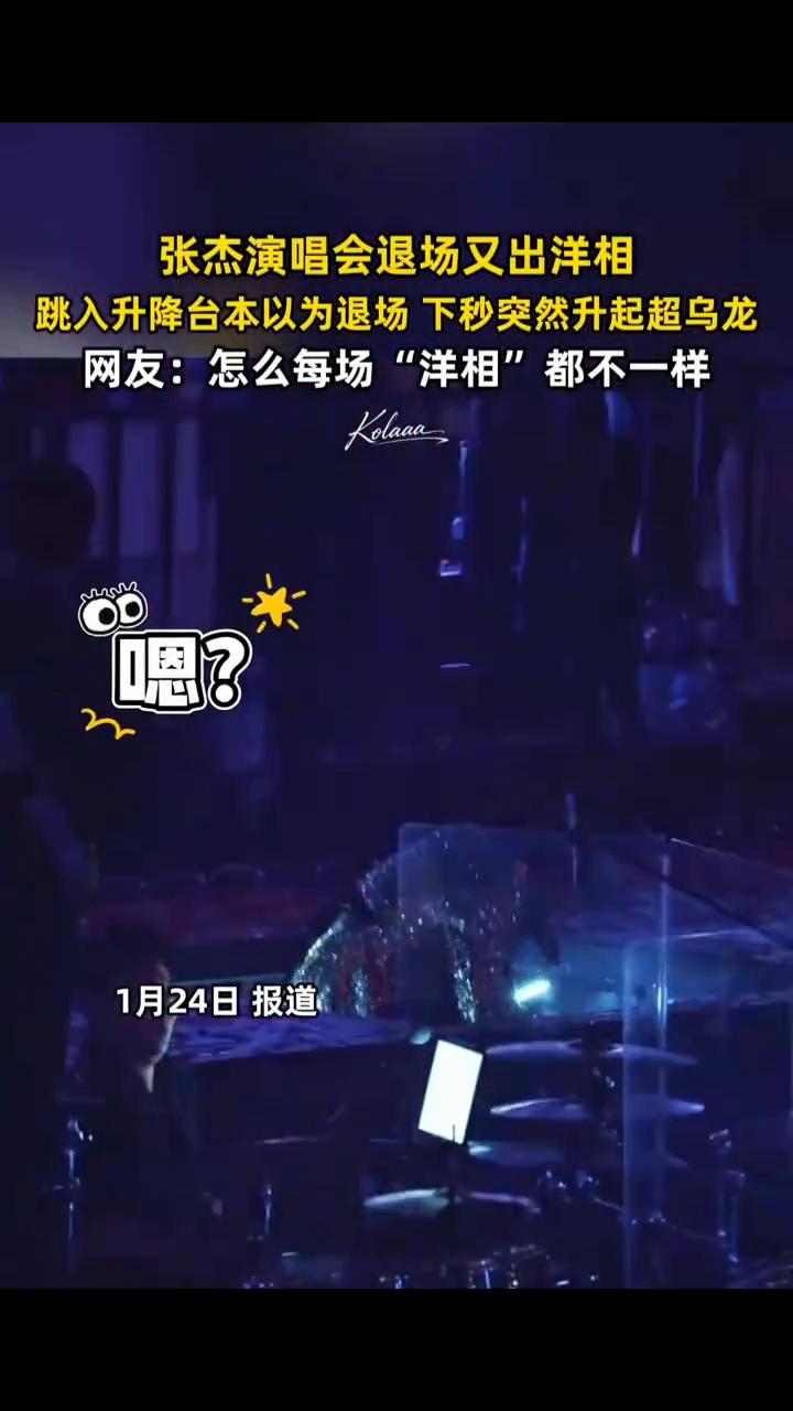 张杰演唱会退场又出洋相,跳入升降台本以为退场,下秒突然升起超乌龙。 网友:怎么每场"洋相"都不一样? 1月24日报道,一个帅气的退场准备。