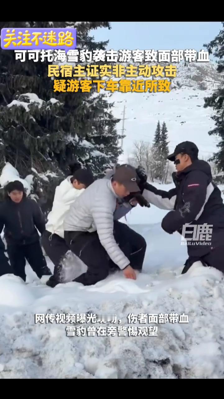 可可托海雪豹袭击游客致面部带血,民宿主证实非主动攻击,疑游客下车靠近所致。 白鹿视频。 1月23日,新疆可可托海景区外宝石沟发生雪豹伤人事件。网传视频曝光现场,伤者面部带血,雪豹曾在旁警惕观望。民宿主表示雪豹非主动攻击,此次伤人系游客靠近引发。