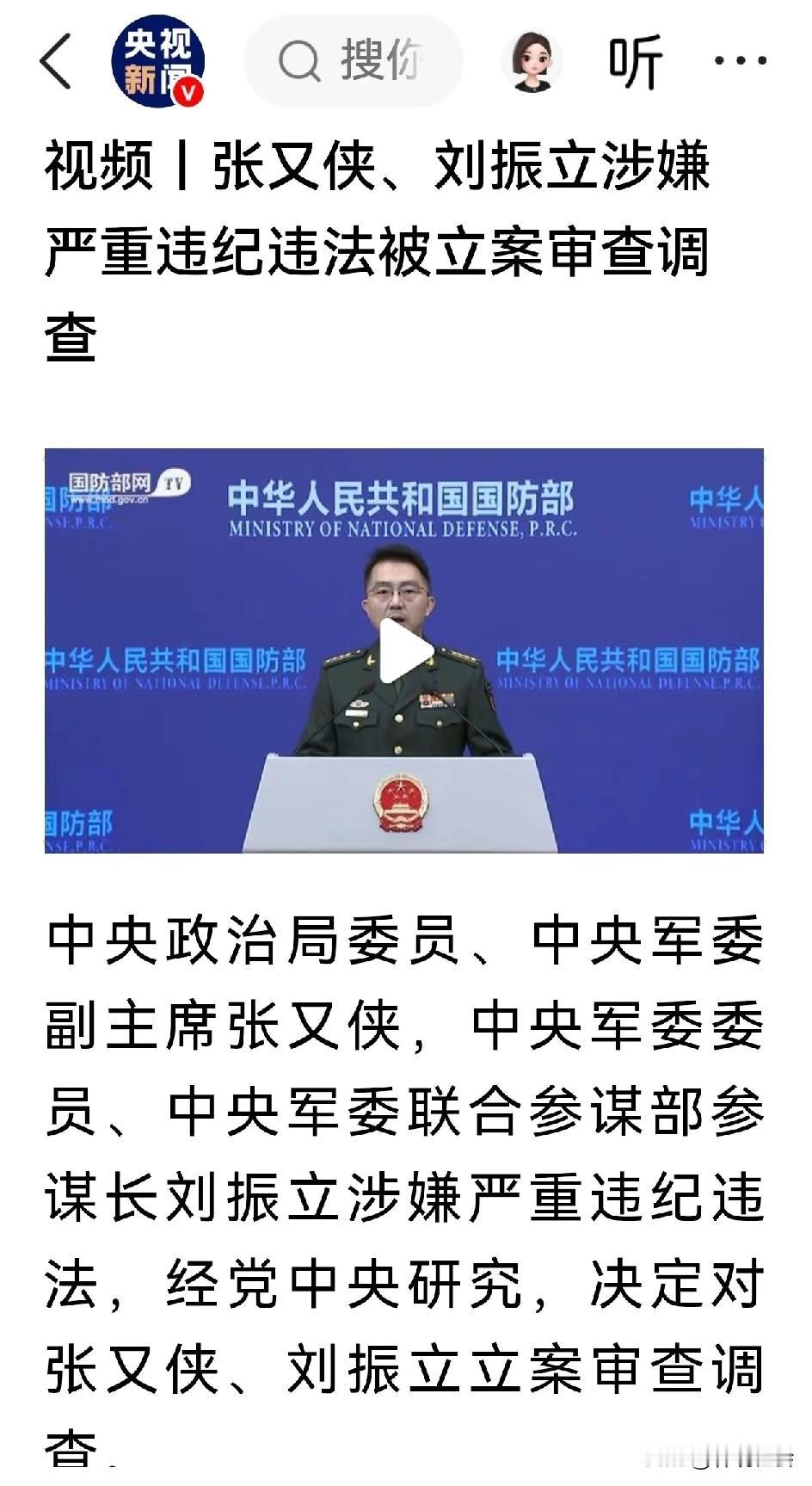 看到这条新闻,确实大吃一惊!由此可以证明,我们党中央的反腐力度空前大,军纪委会议刚开过,大动作就来了! 他们两人的被查处,再次说明无论是谁?无论他的地位有多高?也不管他的权力有多大?都不能违法乱纪。 军队不干净,武器再好有啥用!所以,坚决支持党中央的正确决定!严惩腐败,纯洁党风。