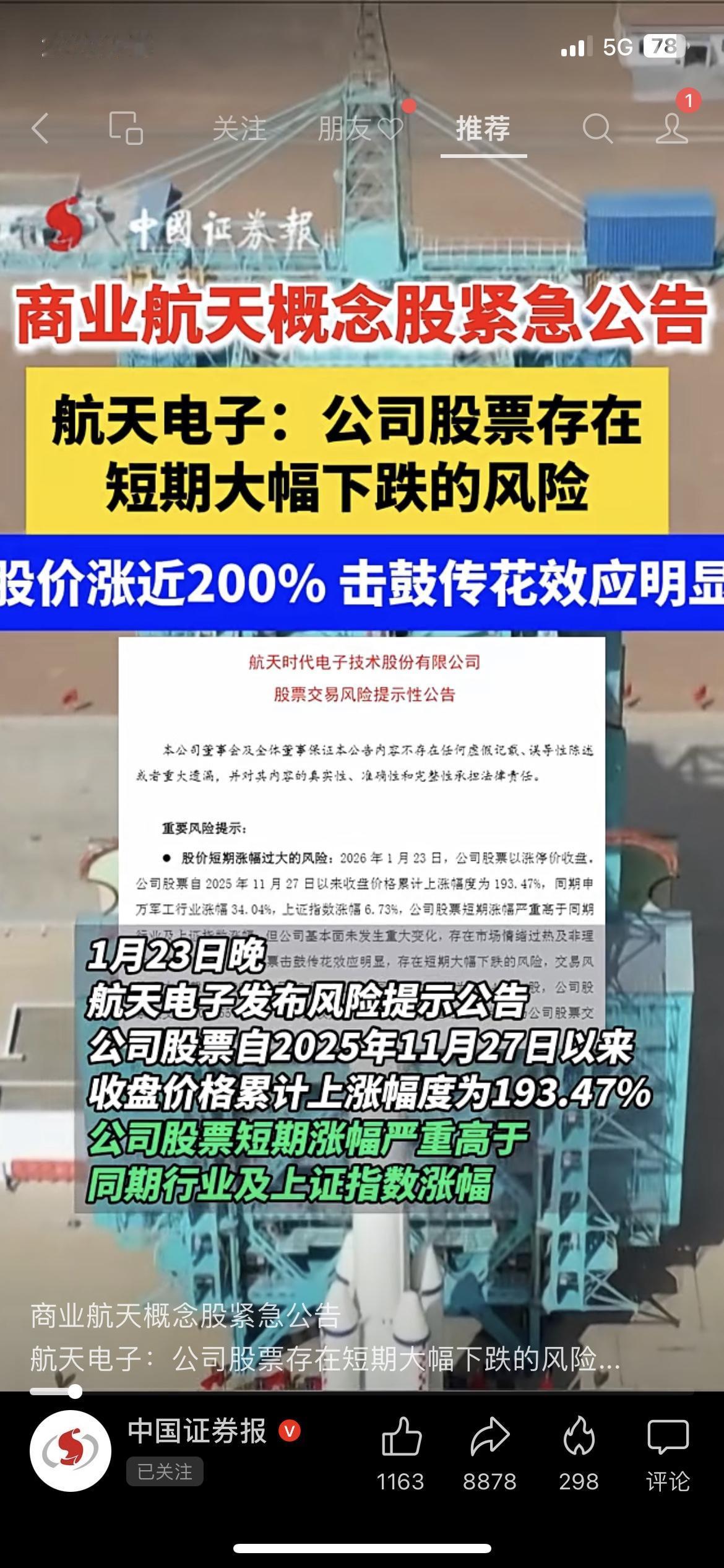 航天电子股价涨近200%,公司紧急发风险提示:击鼓传花效应明显! 股价狂飙后迎重磅预警,追高的股民瞬间慌了,接盘还是逃顶? 你会果断清仓止盈,还是赌一波继续持有? 航天电子 股市行情 股票 财经热点 市场有风险,投资需谨慎