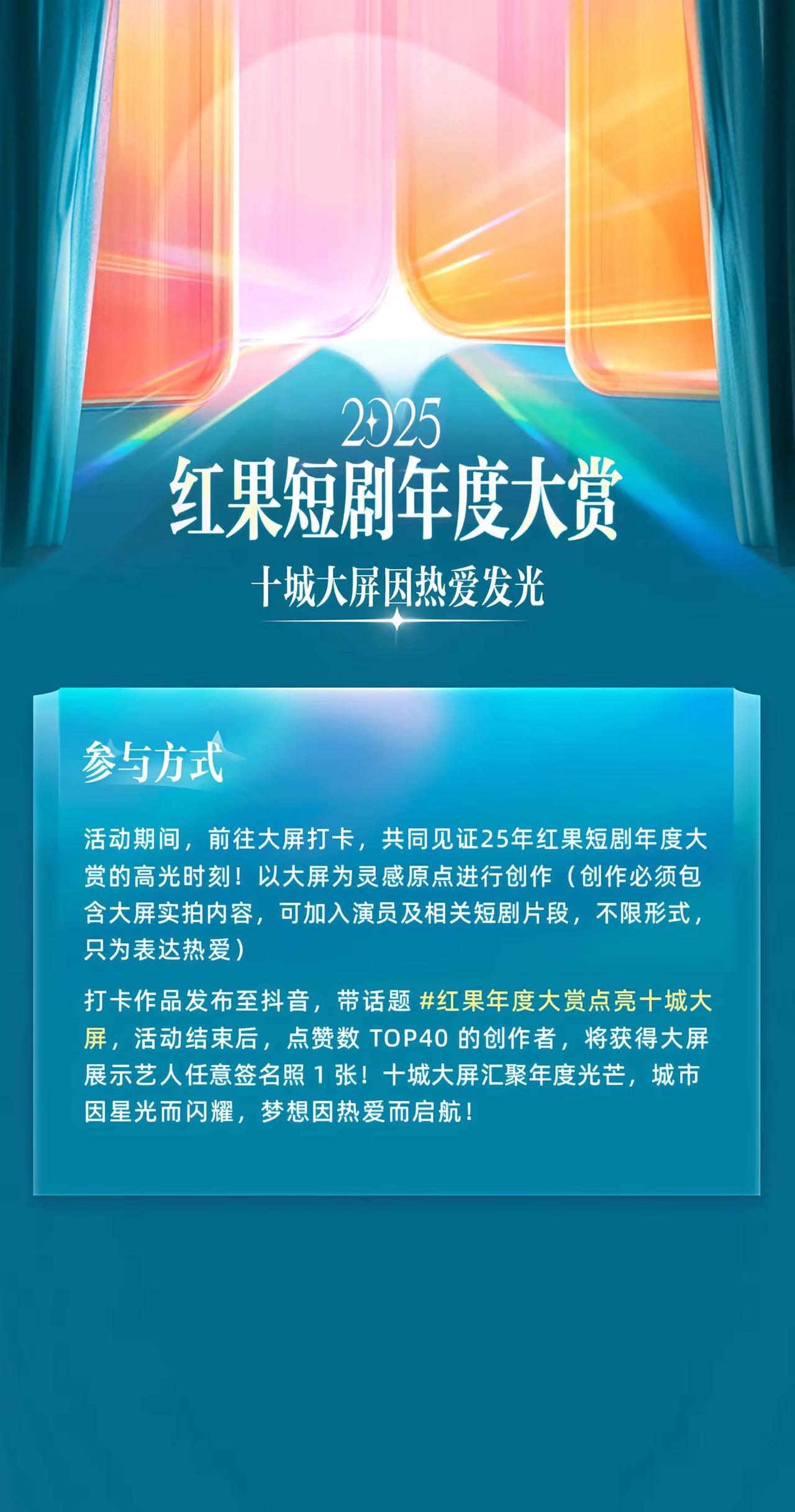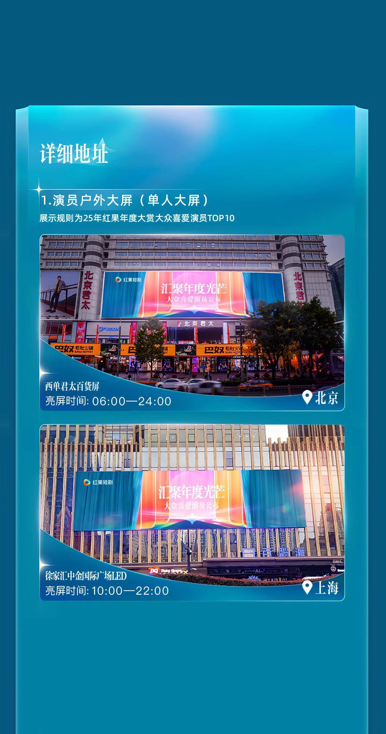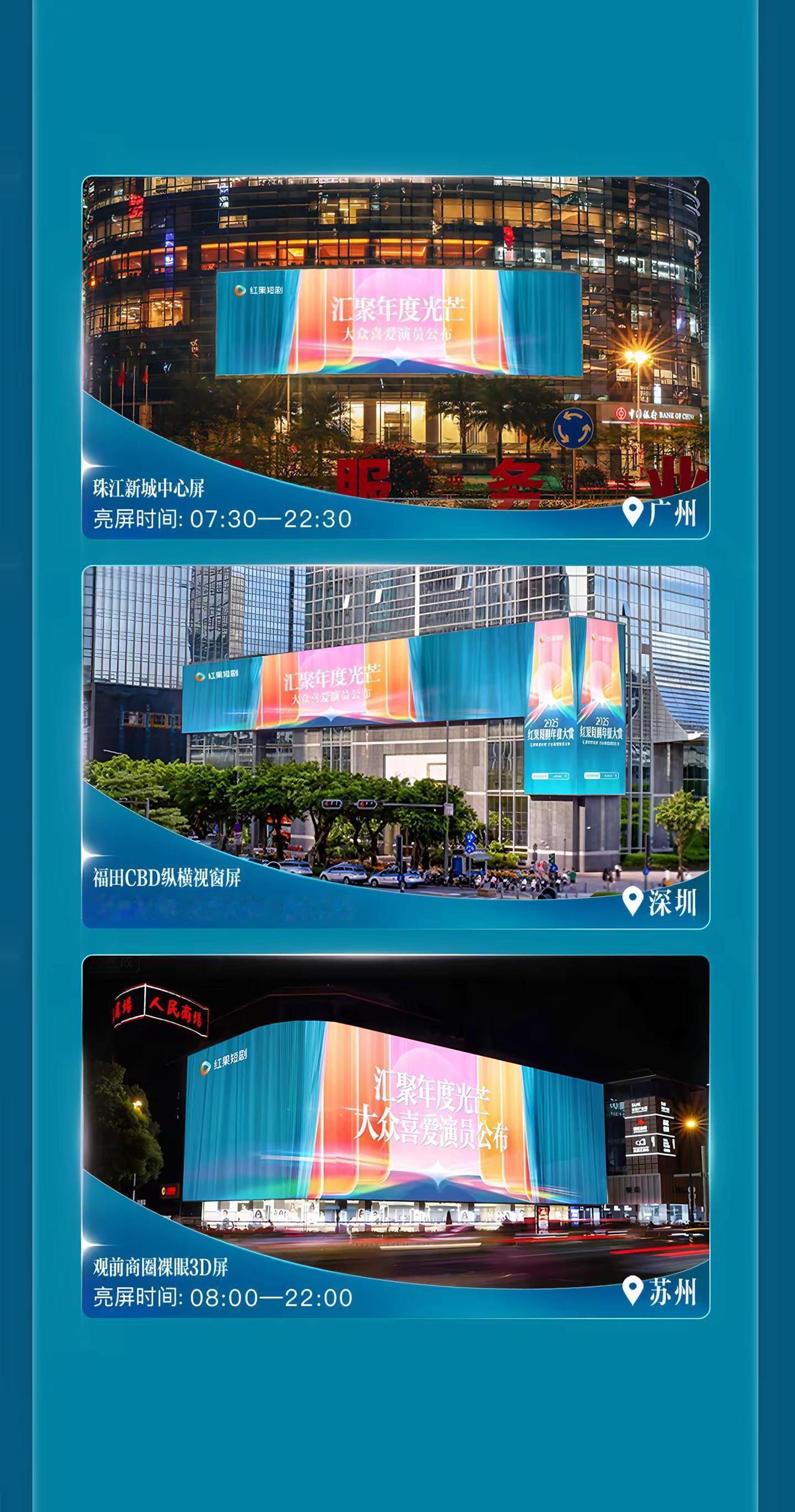 🔥2025红果年度大赏 十城大屏已点亮!1月25日 — 1月31日,走到城市大屏前,把这一刻拍下来——这是属于短剧、也属于你的年度高光。